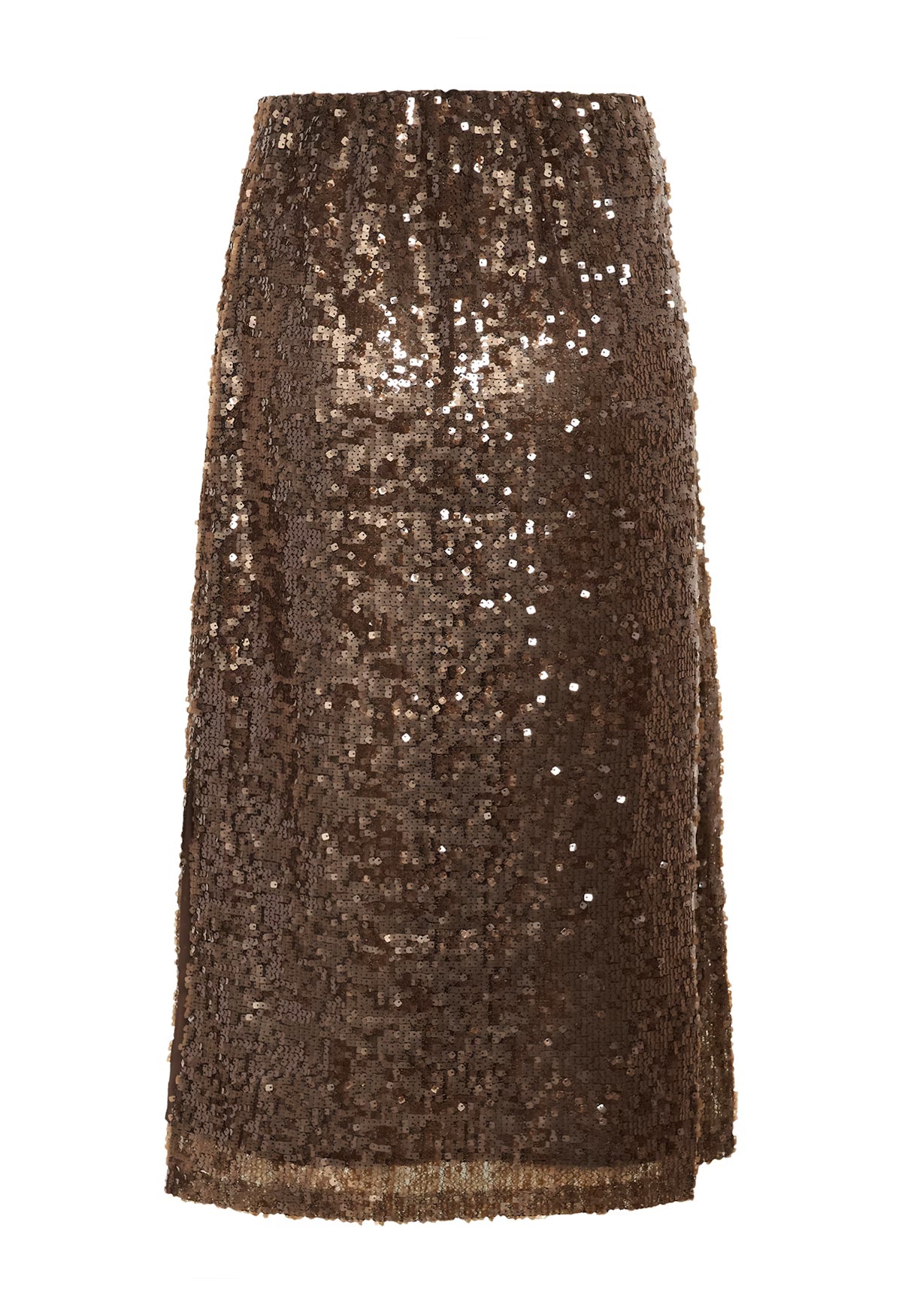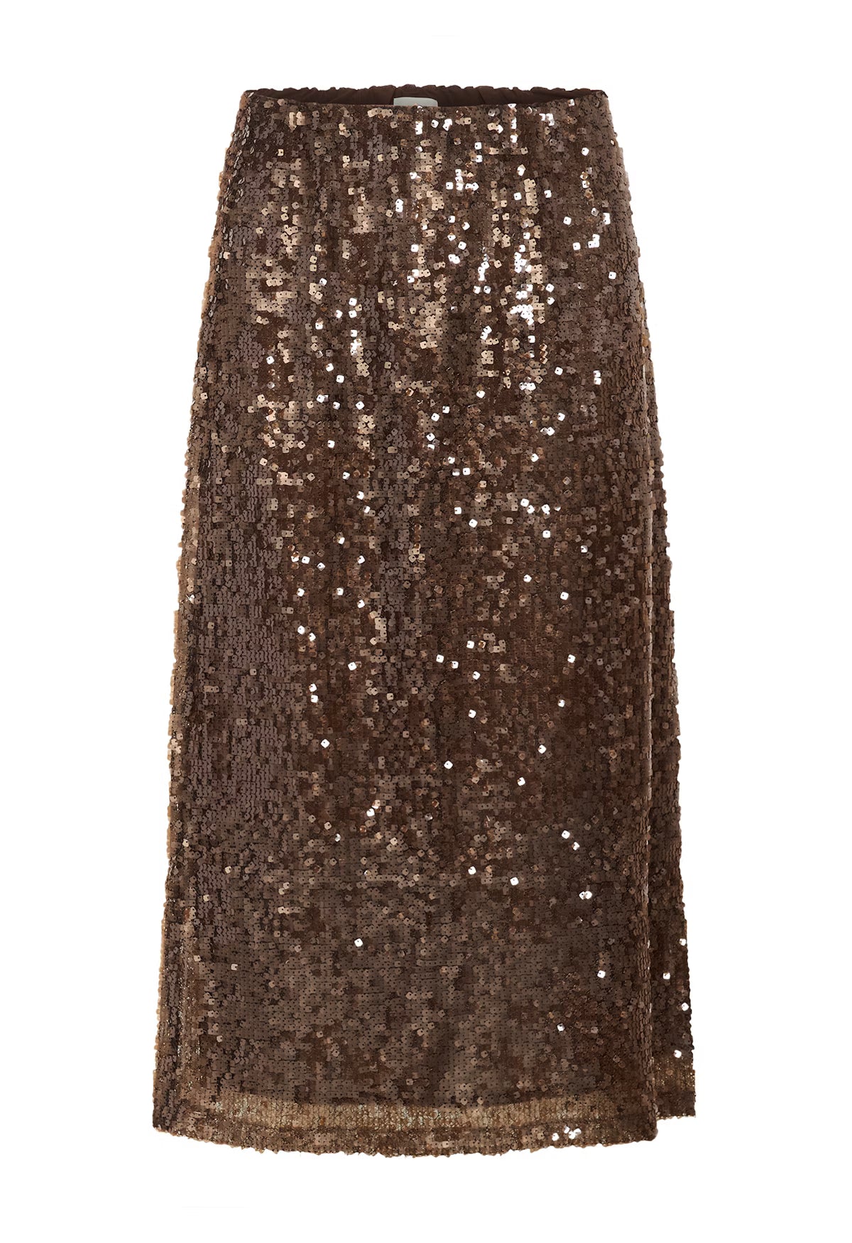 Geggjað brúnt pallíettu pils frá KAFFE. 100% polyester