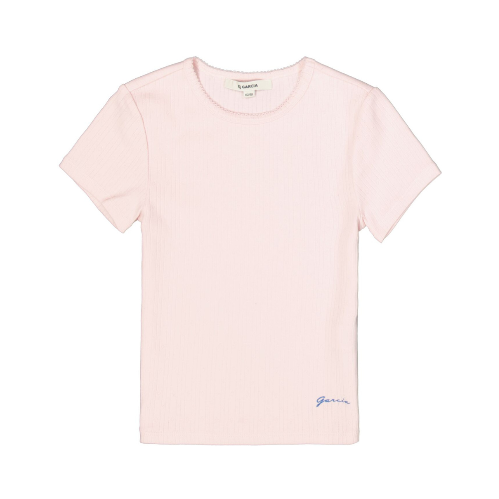 Ljós bleikur stuttermabolur frá Garcia. 95% bómull og 5% elatane.