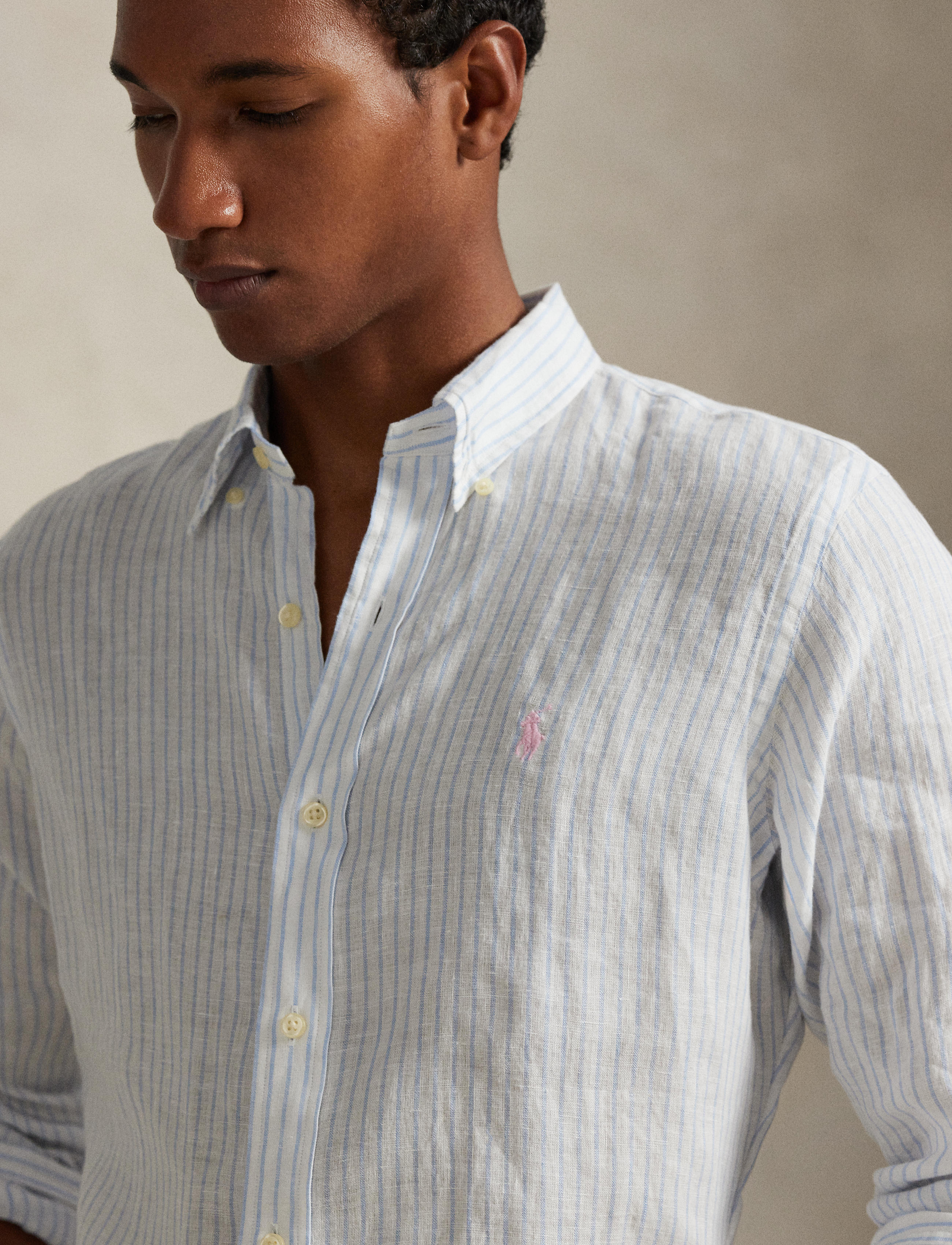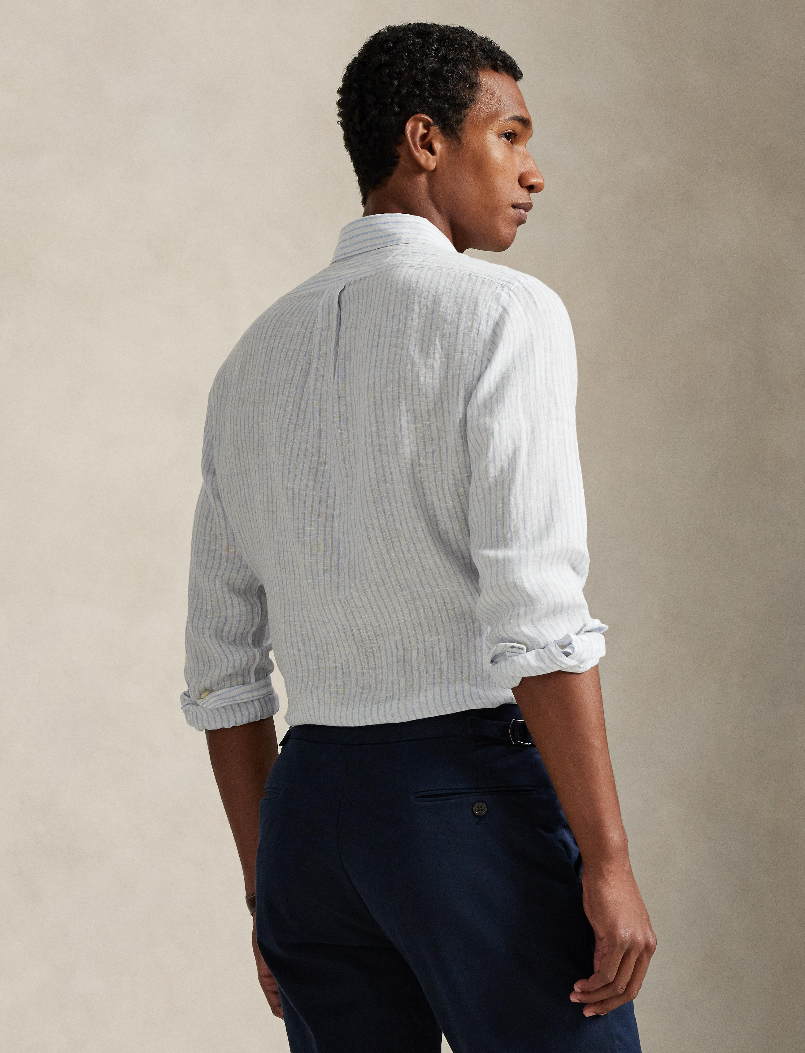 Ultralightweight, breathable linen makes this striped shirt perfectly suited for warm-weather days. Slim Fit: cut close to the body, with fitted sleeves and higher armholes; 5.25" slimmer at ... Sjá nánar