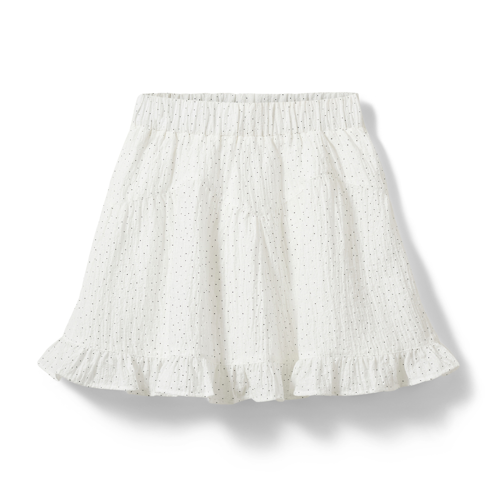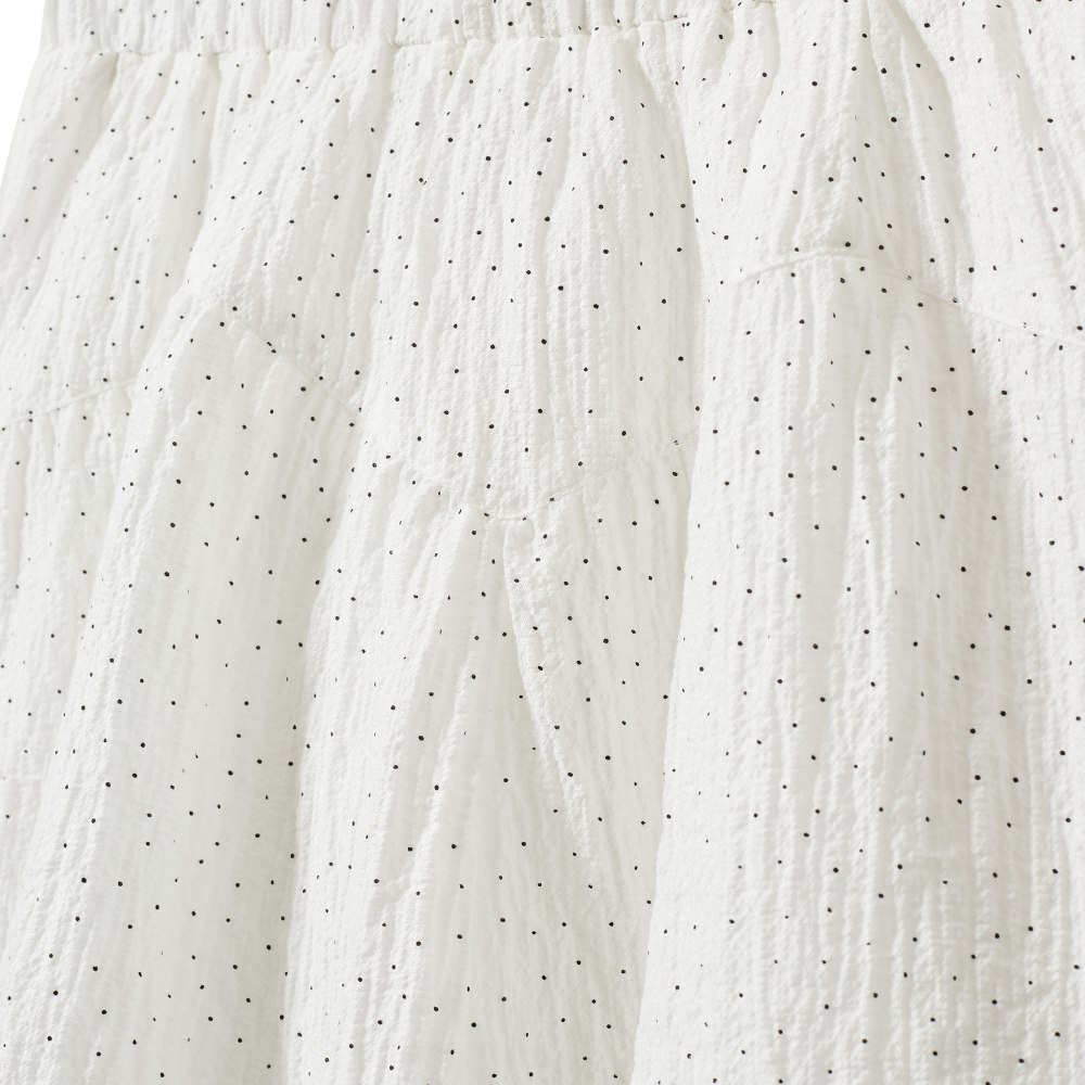 Stutt, hvítt pils með doppum. 80% lyoceil og 20% nylon.