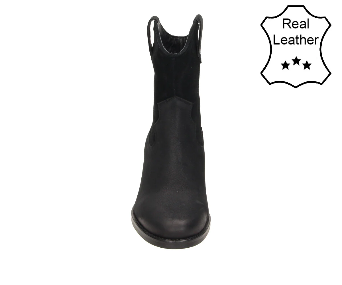 – Svart – Ekta leður að utan – Fóður að innan – Leðurinnlegg – Gúmmísóli – Venjuleg númer – Hæll 3 cm Ótrúlega fallegt og áreynslulaust snið. Við elskum kúrekafílinginn í þeim án þess ... Sjá nánar