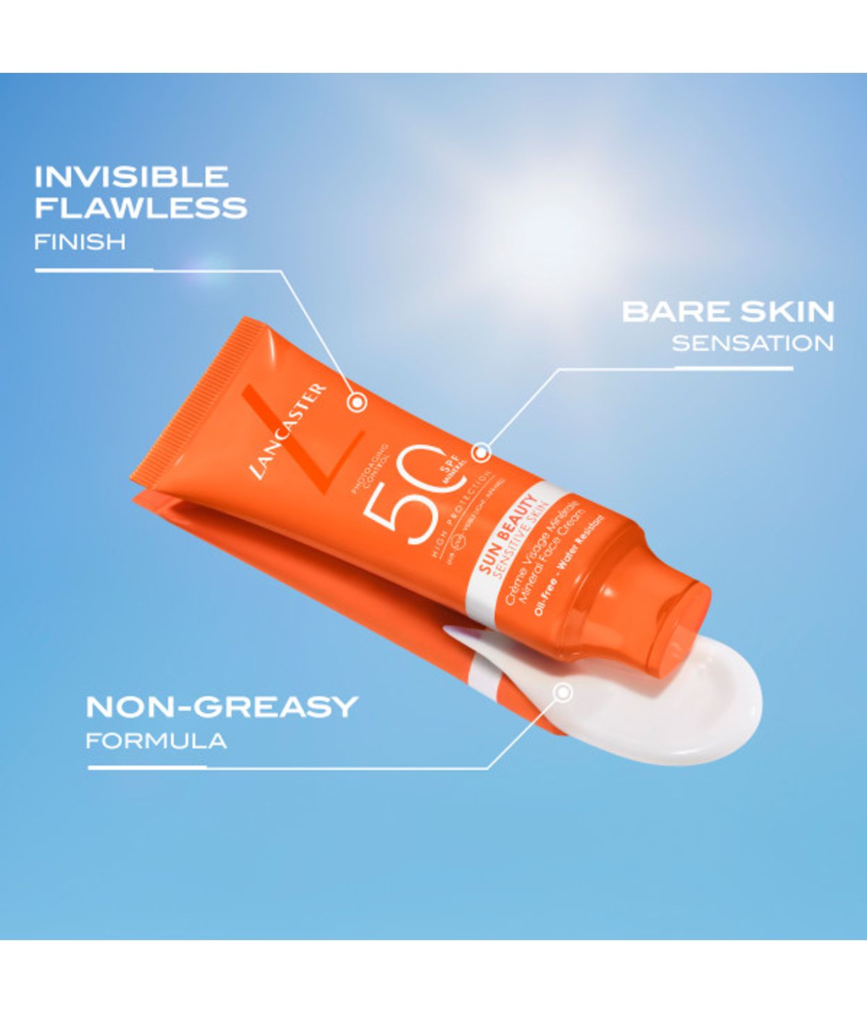 Verndaðu húðina með Sun Beauty Sensitive Skin Mineral Face Cream SPF50, frá Lancaster. Steinefna sólavörn sem er sérstaklega þróuð fyrir viðkvæma húð.