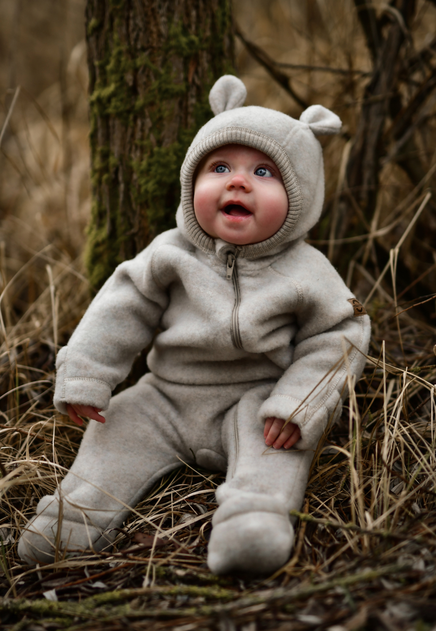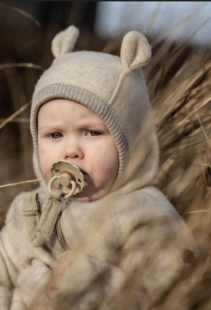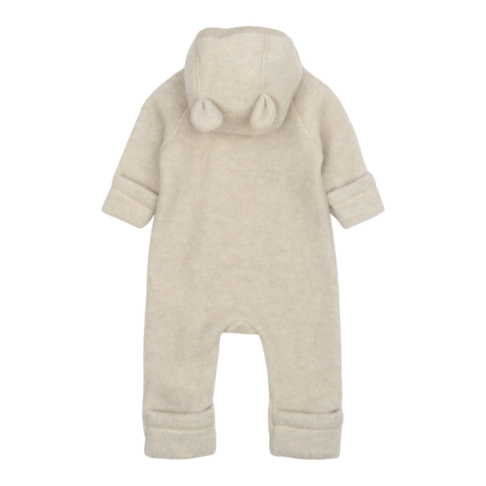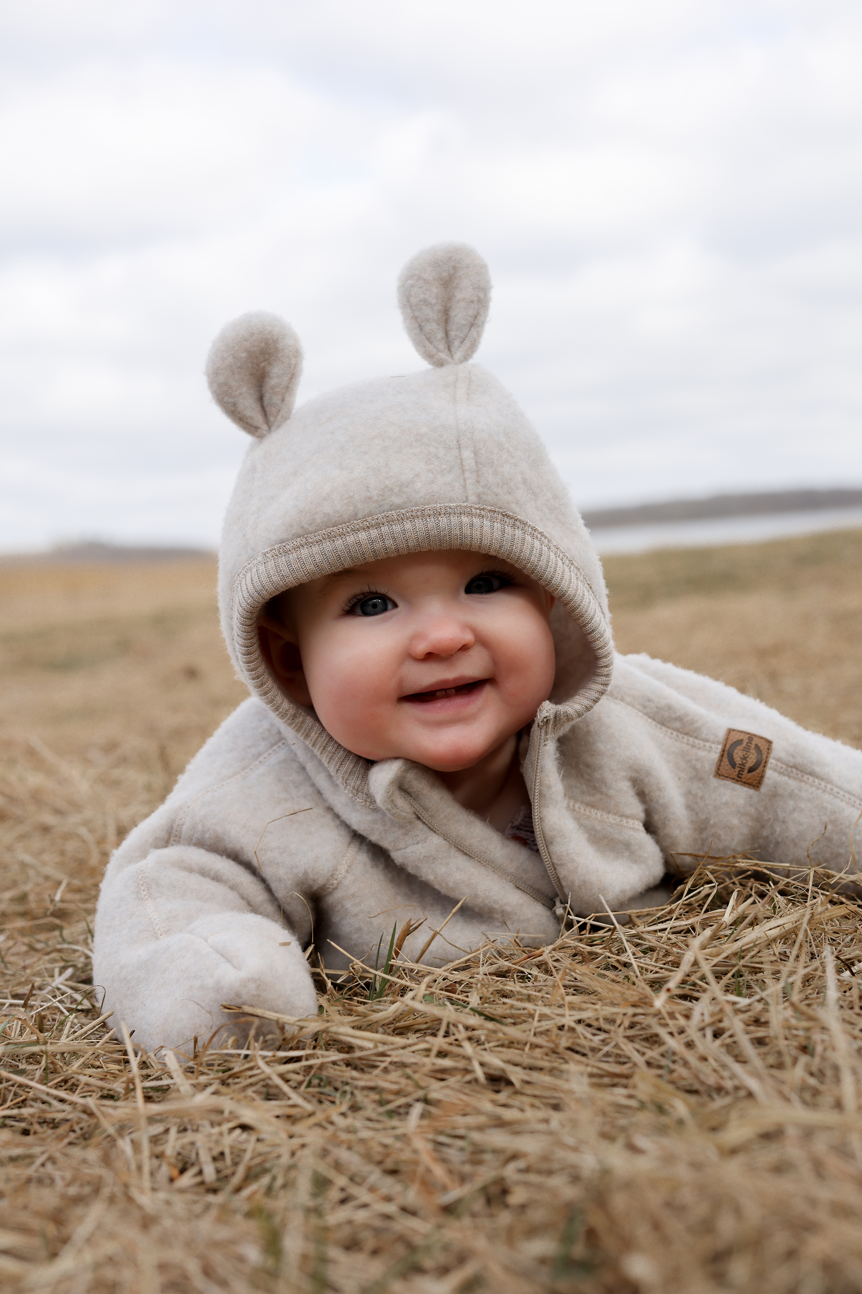 Dásamlegur ullar galli úr mjúkri merino ull sem andar. Gallinn er með hettu með eyrum sem gefur gallanum krúttlegt útlit. Snúningsermar og skálmar halda hita á litlum höndum og fótum. 95% ull ... Sjá nánar
