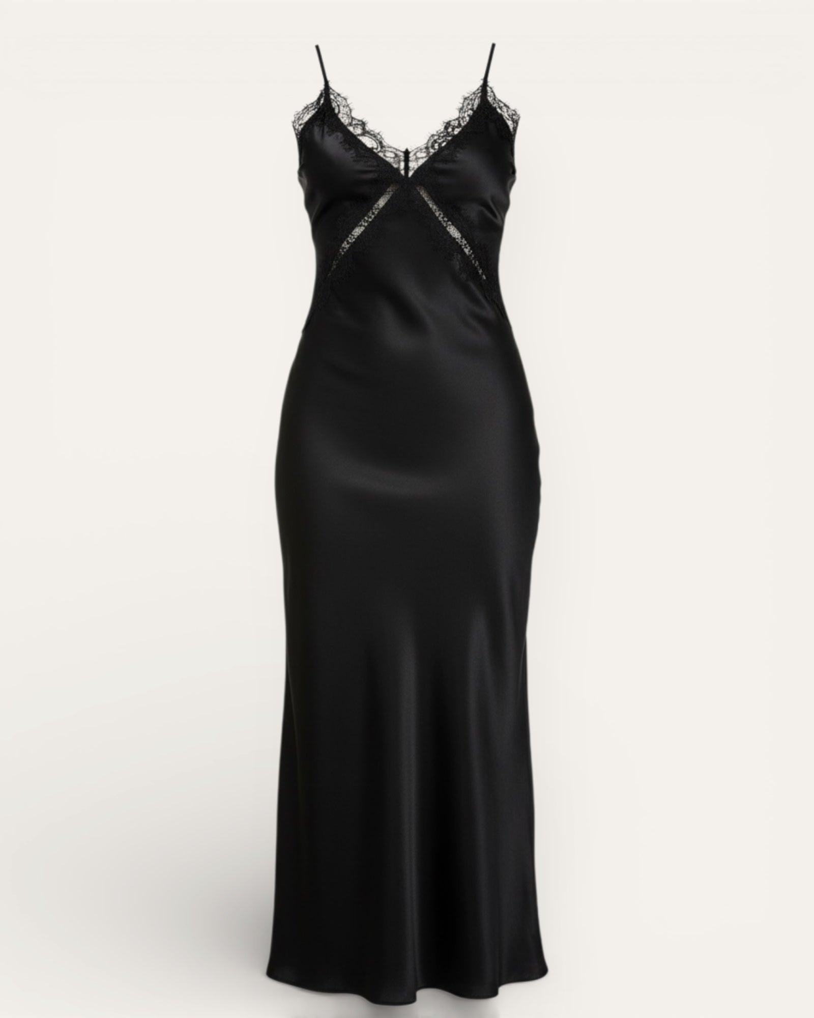 Æðislega fallegur blúndu kjóll úr mjög mjúku satín efni, það er engin teygja í efninu modelið er 168cm og er í stærð S
