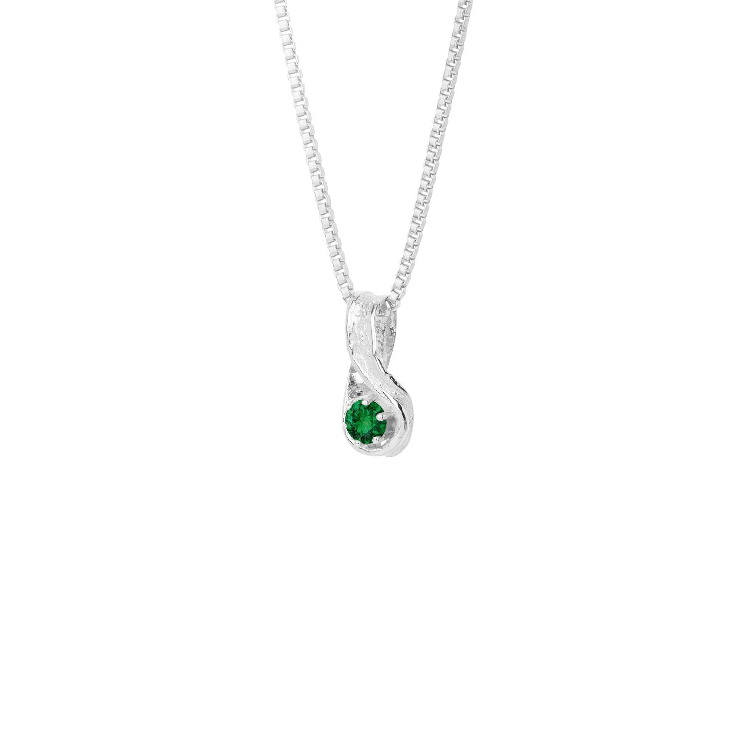 Hálsmenið er handsmíðað úr rhodium húðuðu  silfri  með emerald  steini. F ormið á hálsmeninu er innblásið frá eilífðartákninu.  Hönnuðir og smiðir eru Berglind Snorra og Jón Snorri Sigurðsson.