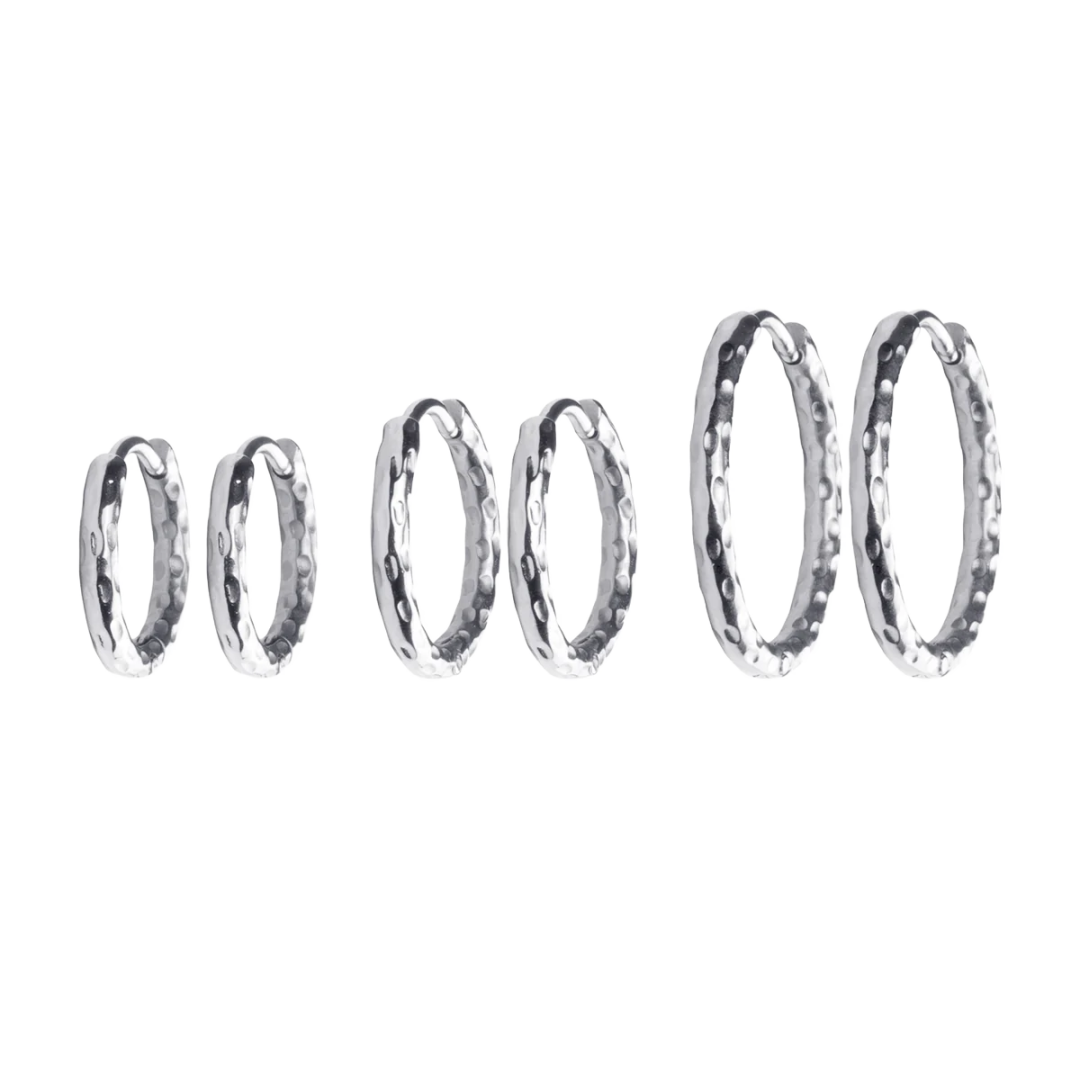 Stærðir: 14, 16 og 20 mm innri hringur í þvermál.Áferð: HömruðEfni: Ryðfrítt stálEyrnalokkum fæst ekki skilað ef innsiglið er rofið. | Moss eyrnalokkar - Silfur