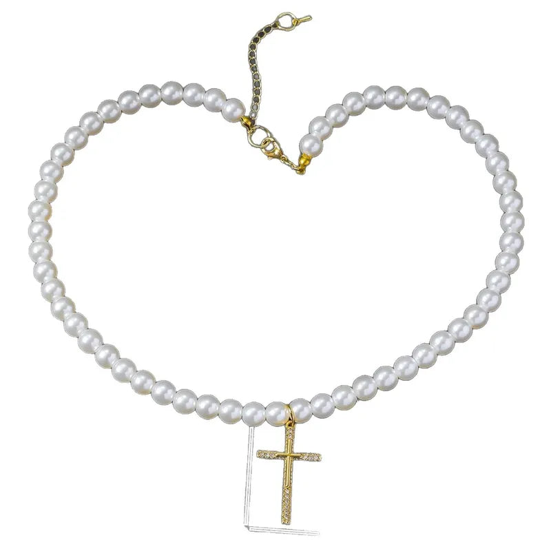 Kross Hálsmen með Sirkonsteinum og Perlu keðju