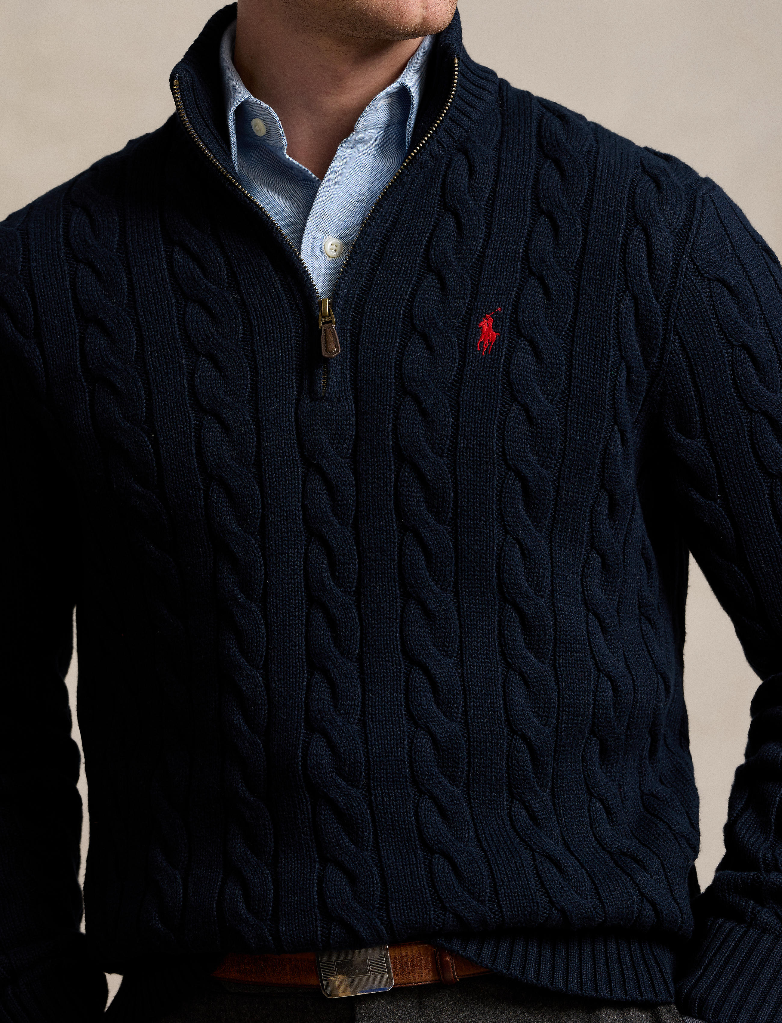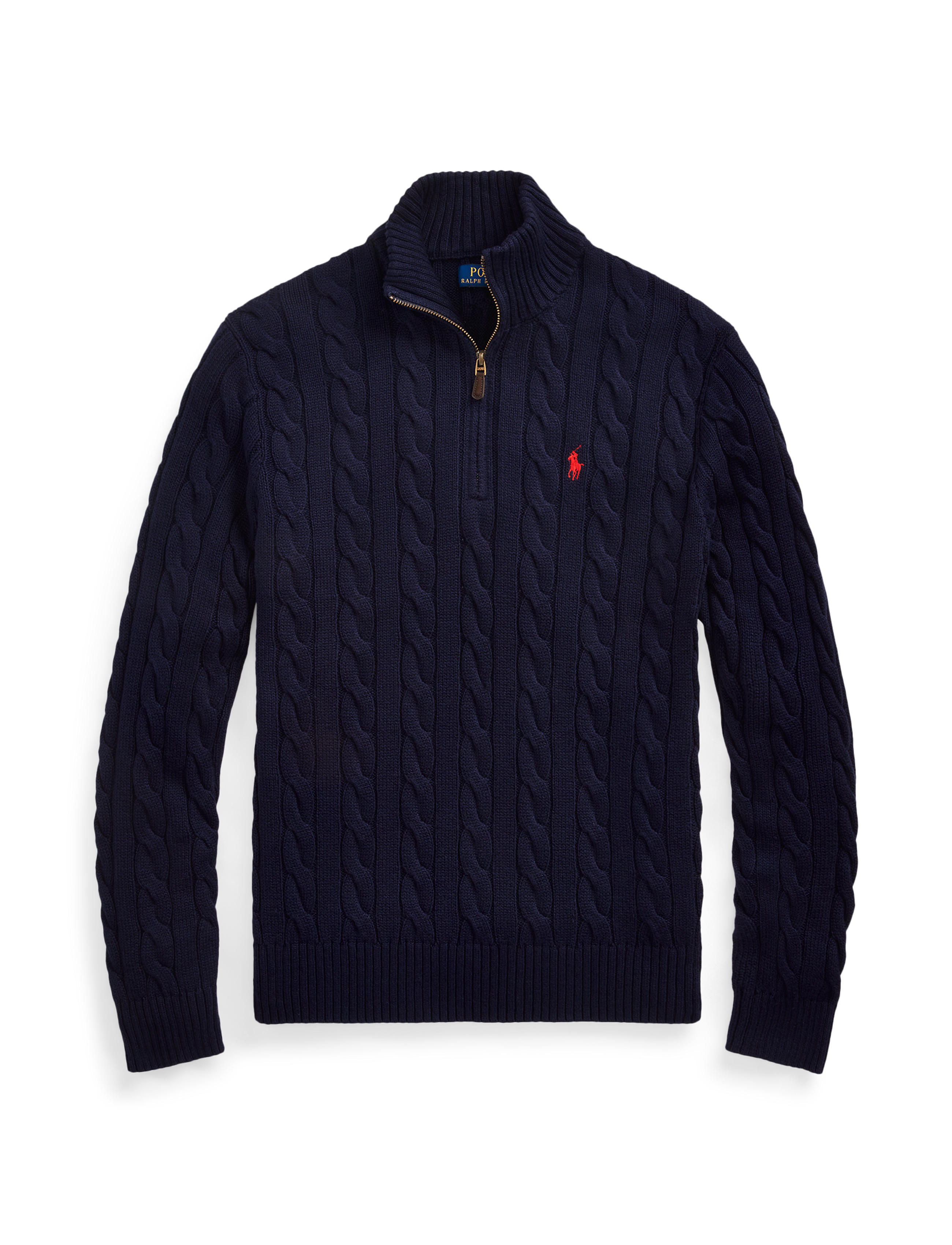 This chunky-knit cotton layer features our iconic cable design and signature embroidered Pony. Regular Fit: wider at the chest while still maintaining a modern silhouette. Size medium has a ... Sjá nánar