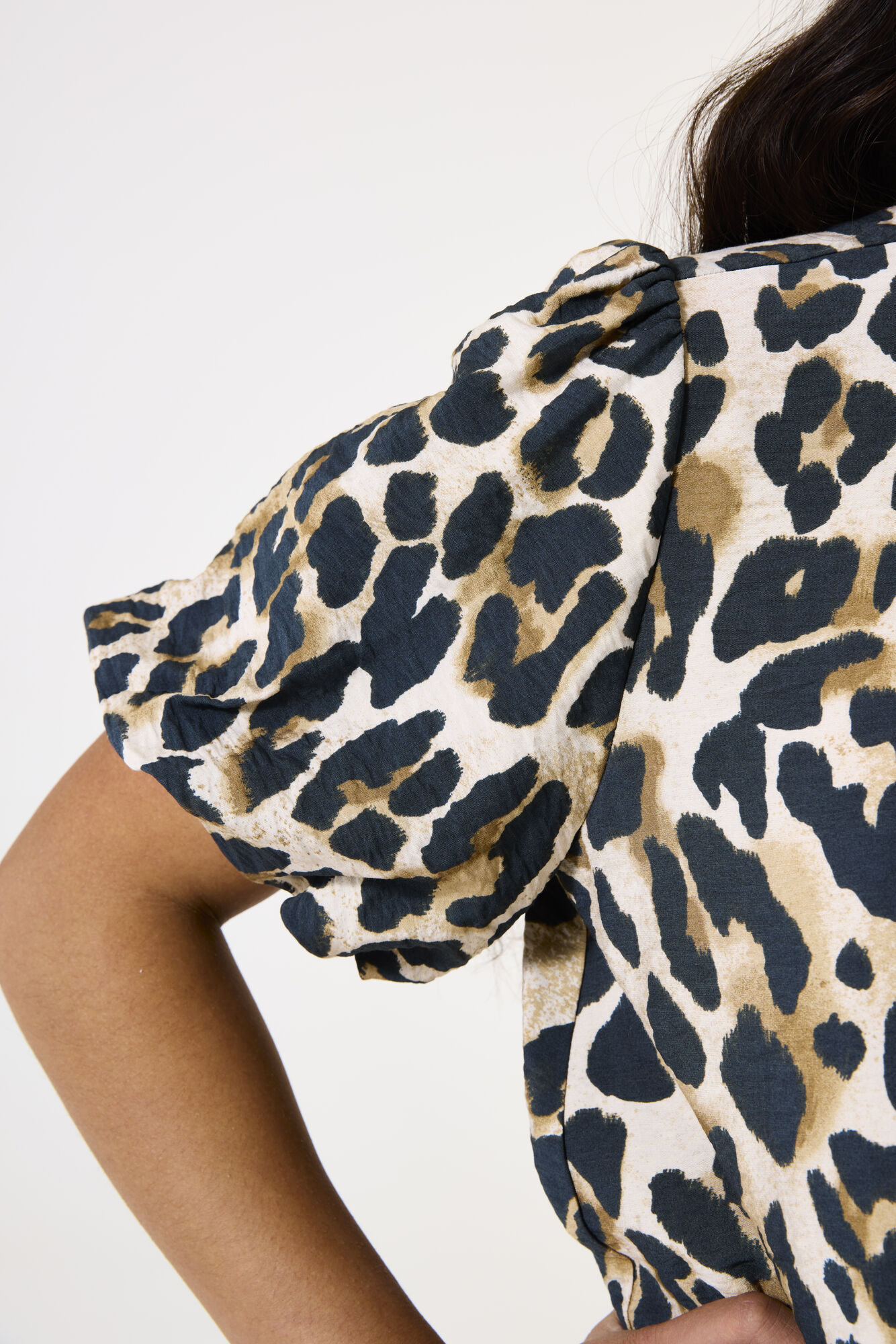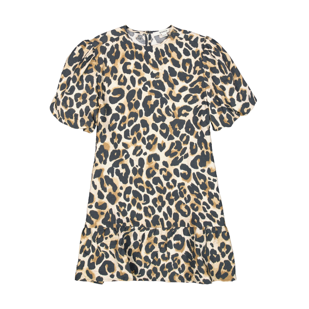 Fallegur, mynstraður kjóll með stuttum ermum frá Garcia. 88% viscose og 12% polyamide.