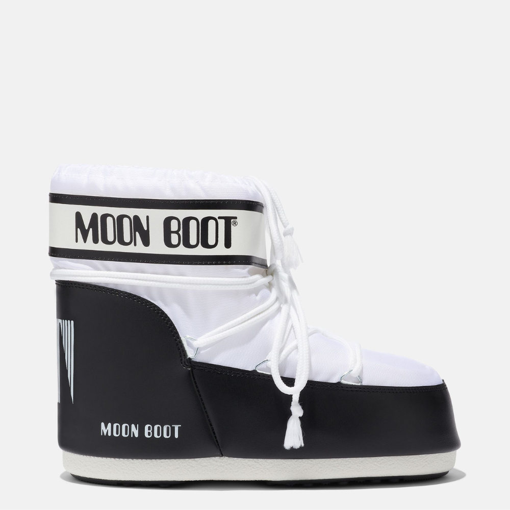 Hvít, lág Moon Boot. Skórnir eru innblásnir af tungl lendingunni 1969 og eru vel einangraðir með léttum millisóla og gripmiklum gúmmí sóla. Skórnir eru fóðraðir með svokölluðu froðufóðri sem ... Sjá nánar