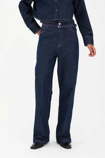 Flottar gallabuxur í víðu sniði með belti sem hægt er að fjarlægja. Gallabuxurnar henta við hverskyns tilefni.