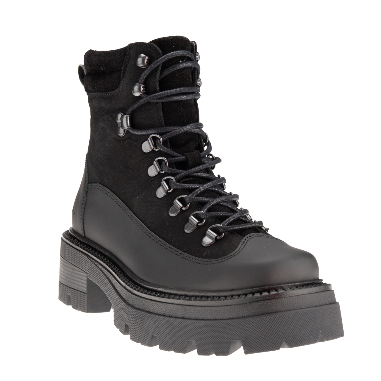 Grófir götuskór með þykkan og grófmynstraðan sóla og klossaðan hæl.