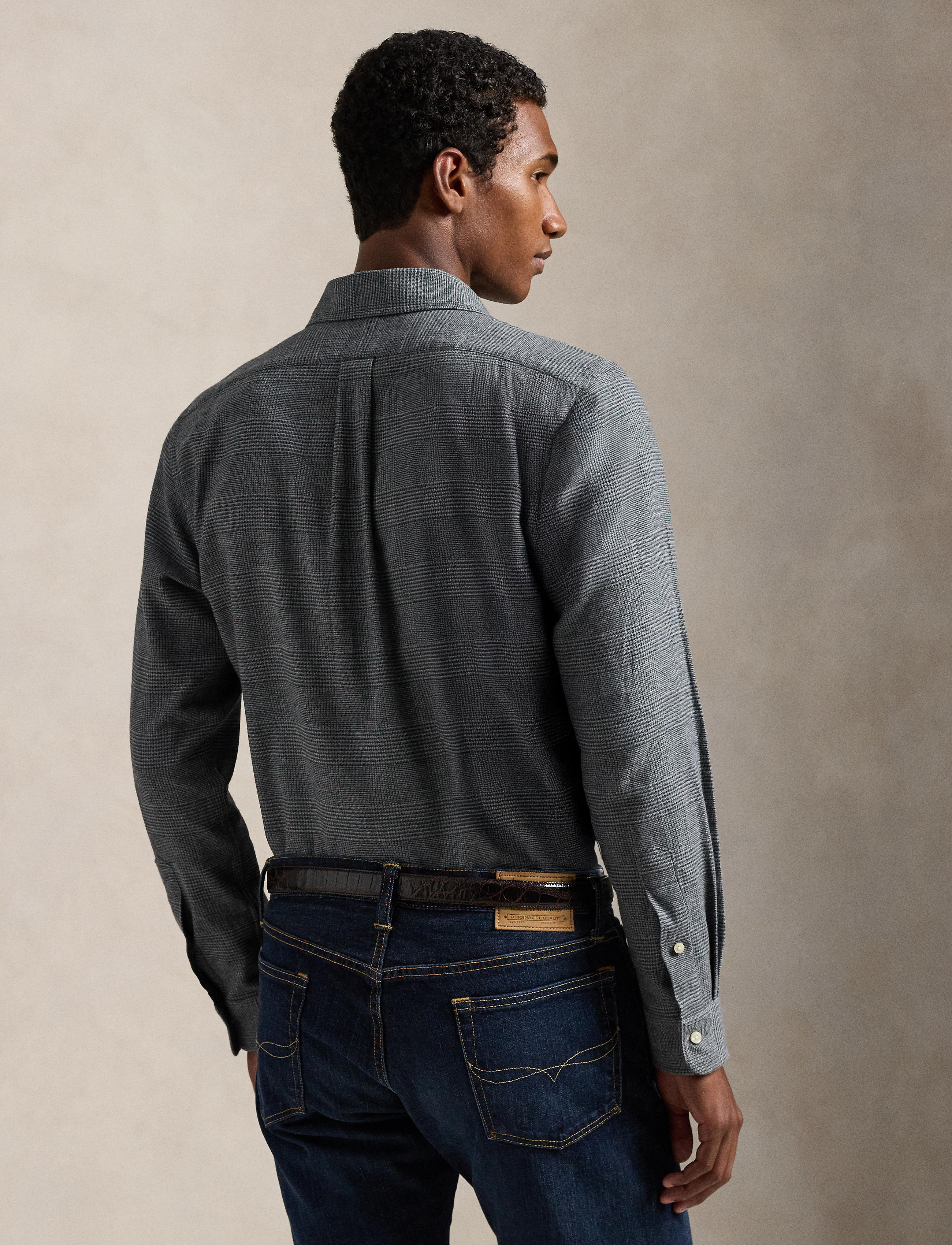 This Glen plaid shirt is crafted from an innovative brushed twill fabric that is both wrinkle-resistant and moisture-wicking to help keep you cool throughout the day. Custom Fit: a trim ... Sjá nánar