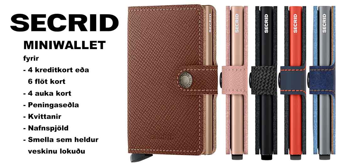 Margverðlaunuð hönnun. Secrid Miniwallet eru gerð úr gegnheilu áli og ekta leðri, allur frágangur hinn vandaðasti. Álið kemur í veg fyrir skönnun á kortunum og leðrið gefur veskinu fágað ... Sjá nánar