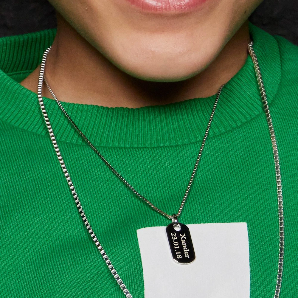 Glæsilegt barnahálsmen. Efni keðju/hálsmens: Silfur Aldursbil: Tveggja til tólf ára (þetta er einungis viðmið) Hægt að áletra: Já
