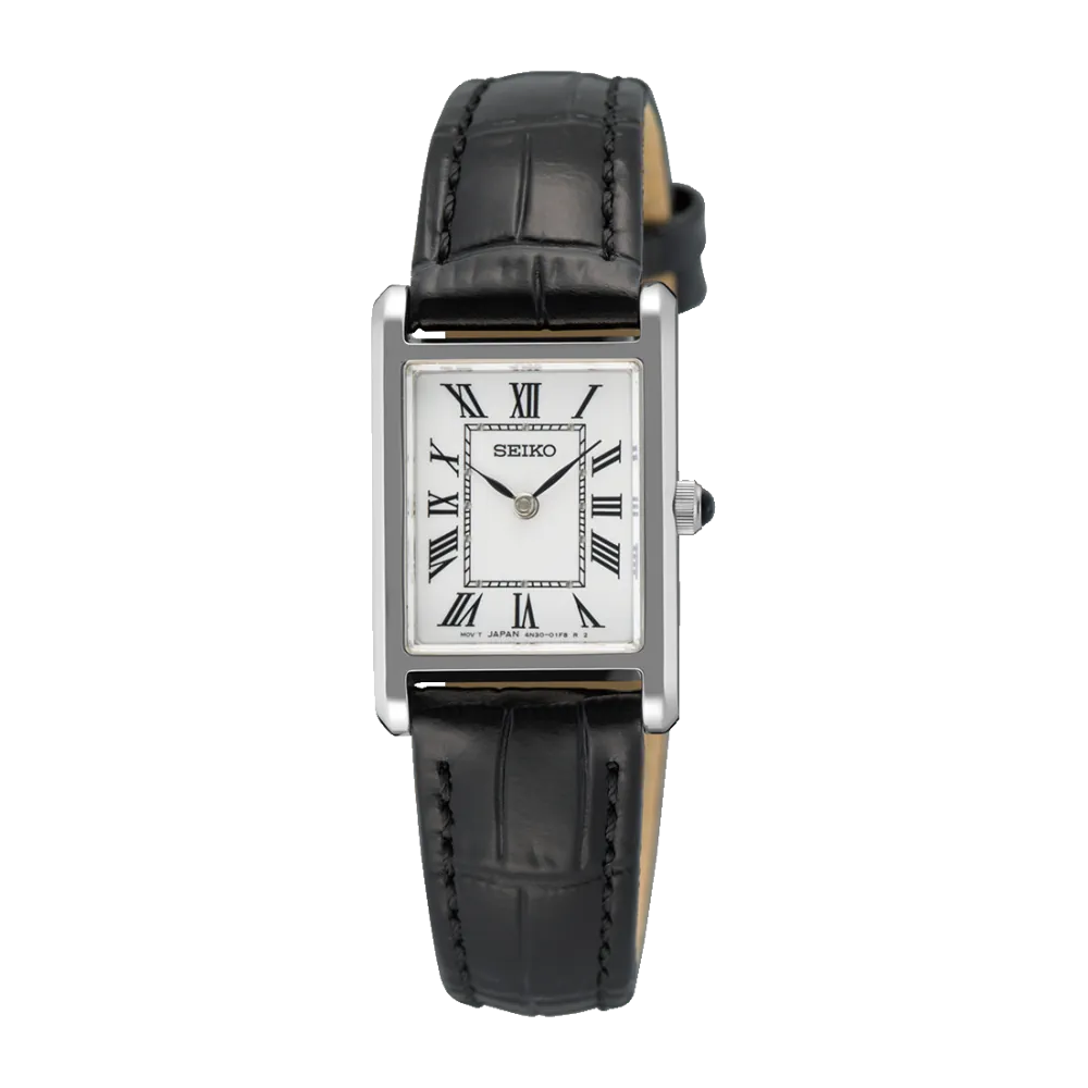 Úrkassi: 20 x 29mm – stál Úrverk: Rafhlaða Vatnsvörn: 50M Skífa: Hvít – vísar Gler: Safírgler Ól: Leður Ábyrgð: Tveggja ára