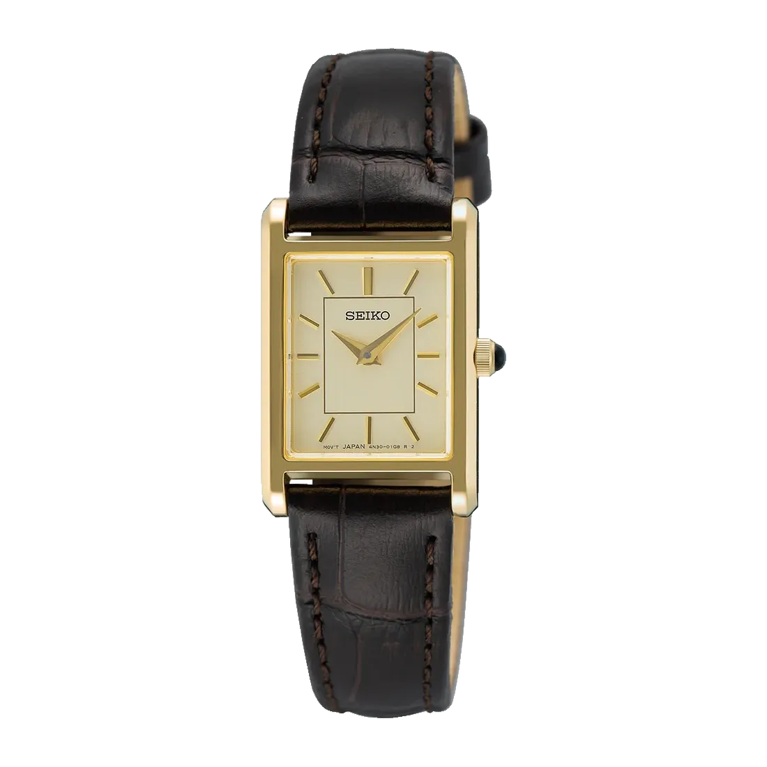 Úrkassi: 20 x 29mm – gyllt stál Úrverk: Rafhlaða Vatnsvörn: 50M Skífa: Gyllt – vísar Gler: Safírgler Ól: Leður Ábyrgð: Þriggja ára