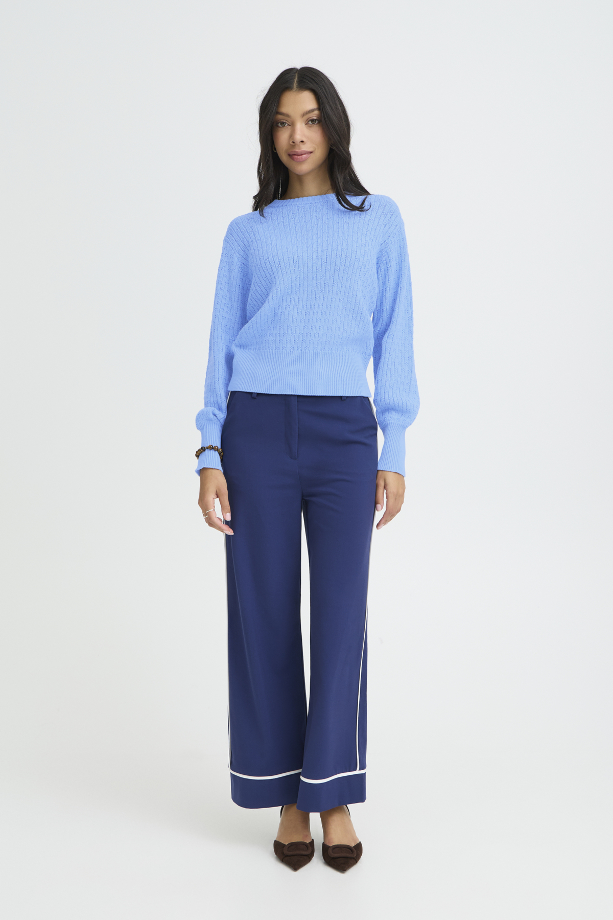 Peysa m. áfastri skyrtu - Blá