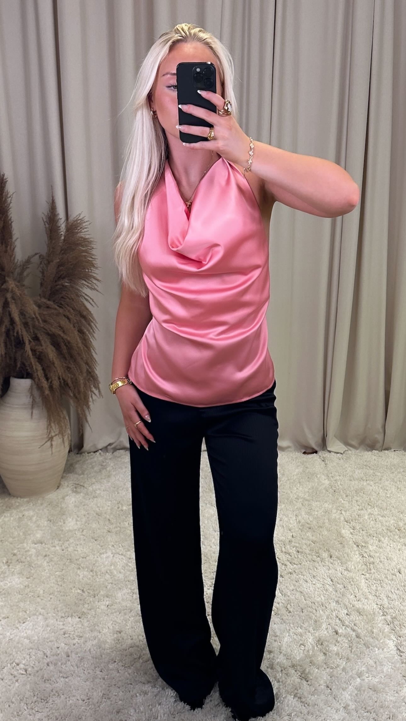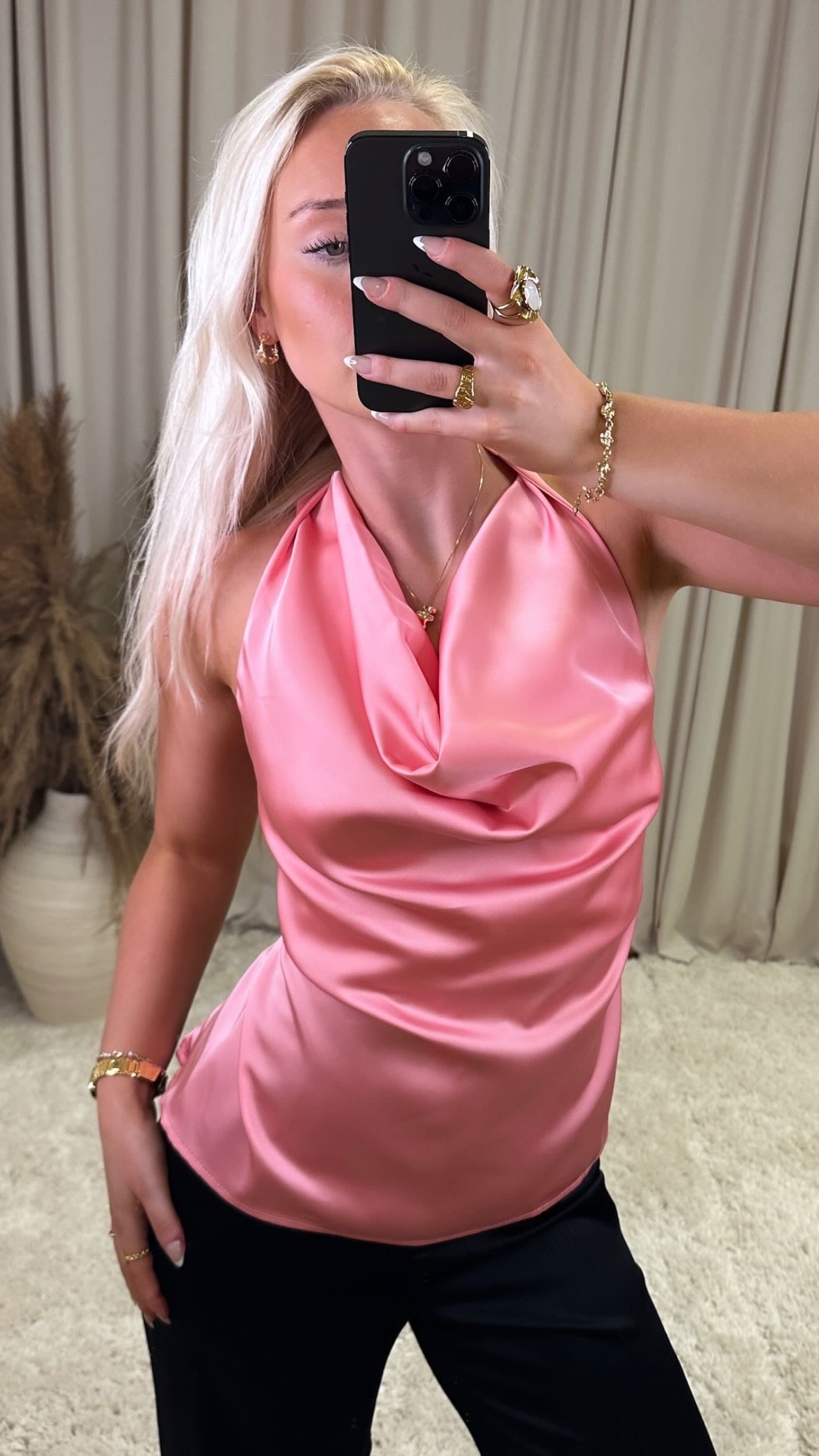 Æðislega flottur bolur úr mjög mjúku satín efni, það er engin teygja í efninu og er opin í bakið modelið er 160cm og er í stærð S