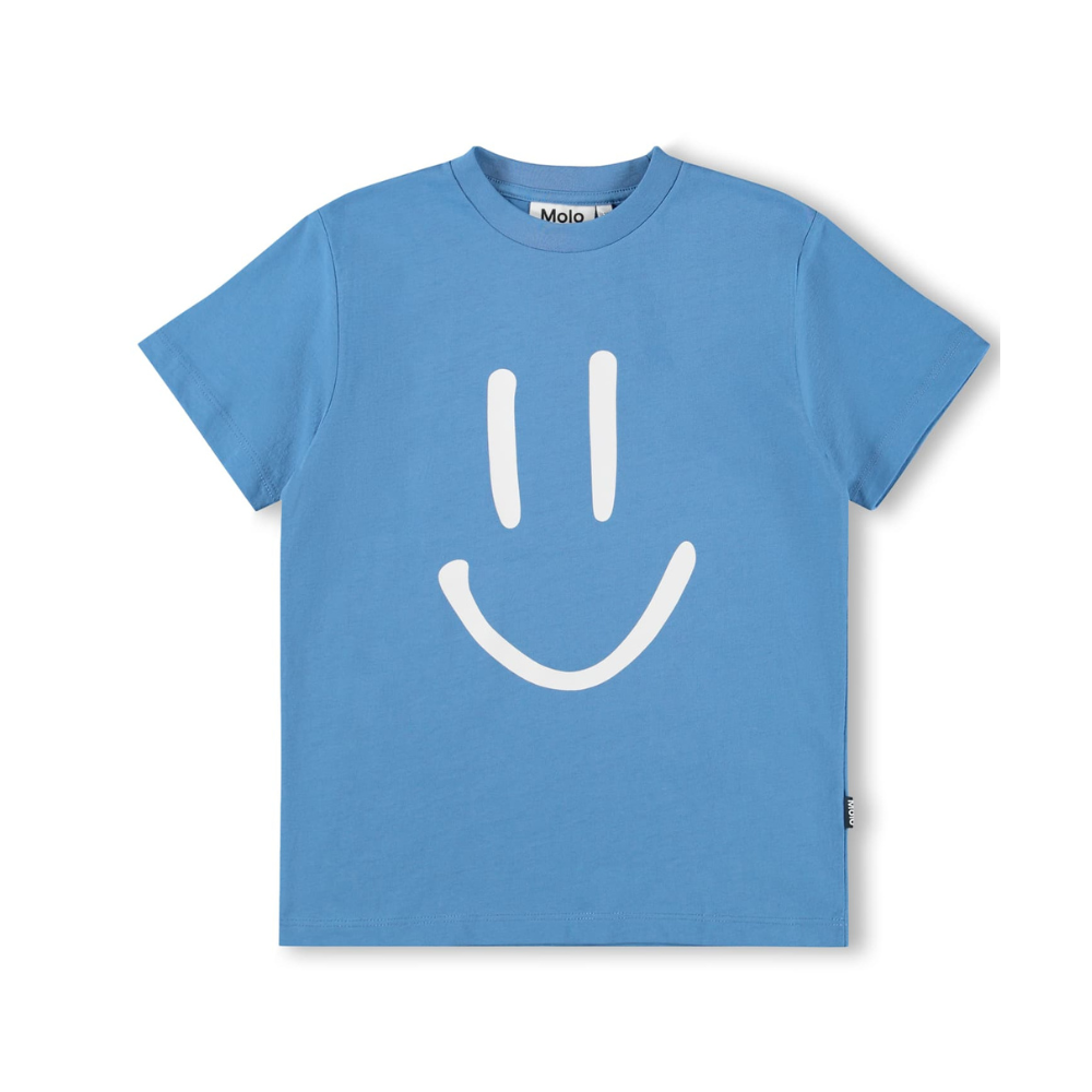 Ljós blár stuttermabolur frá Molo með broskalli að framan. 100% bómull.