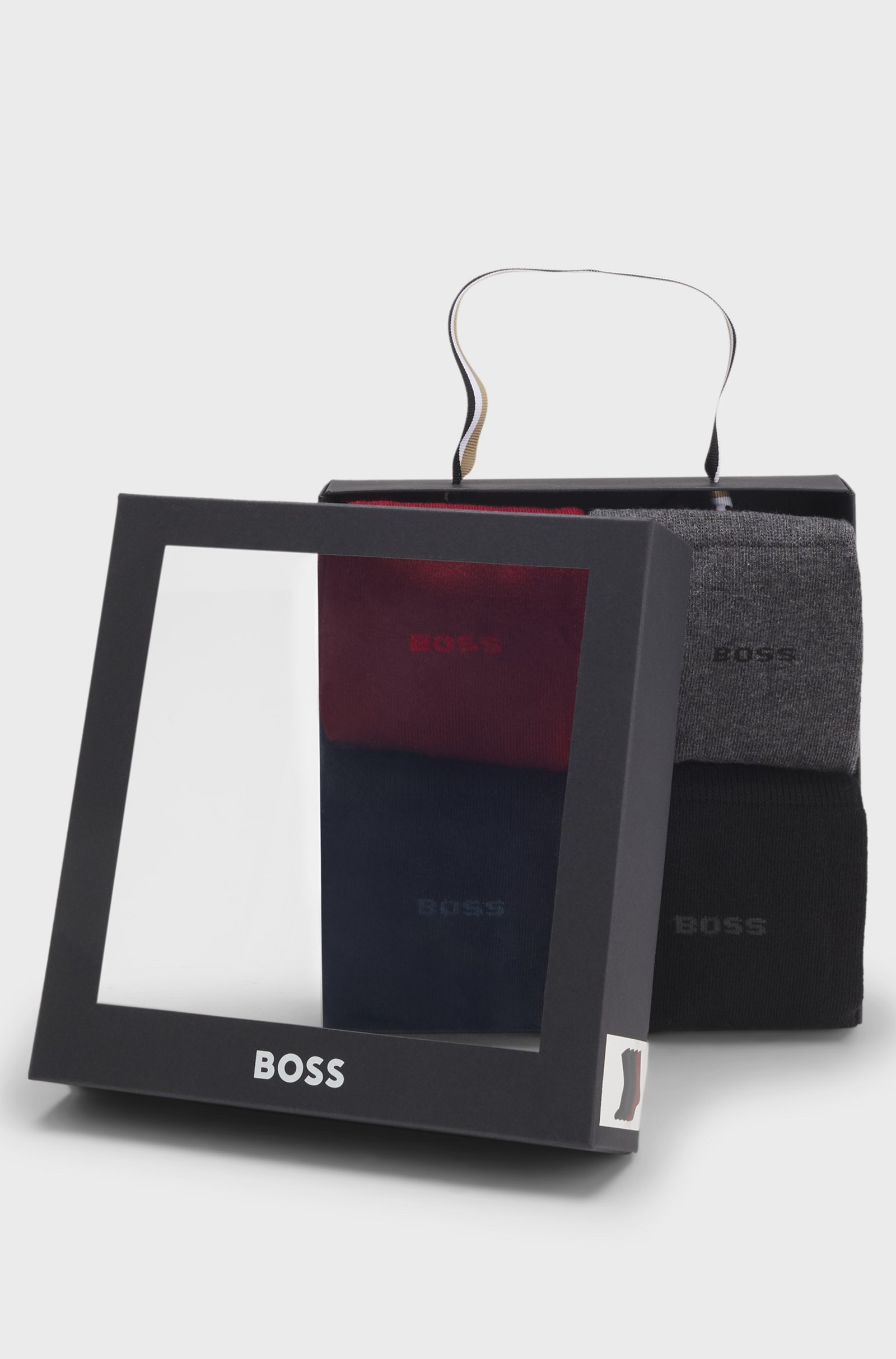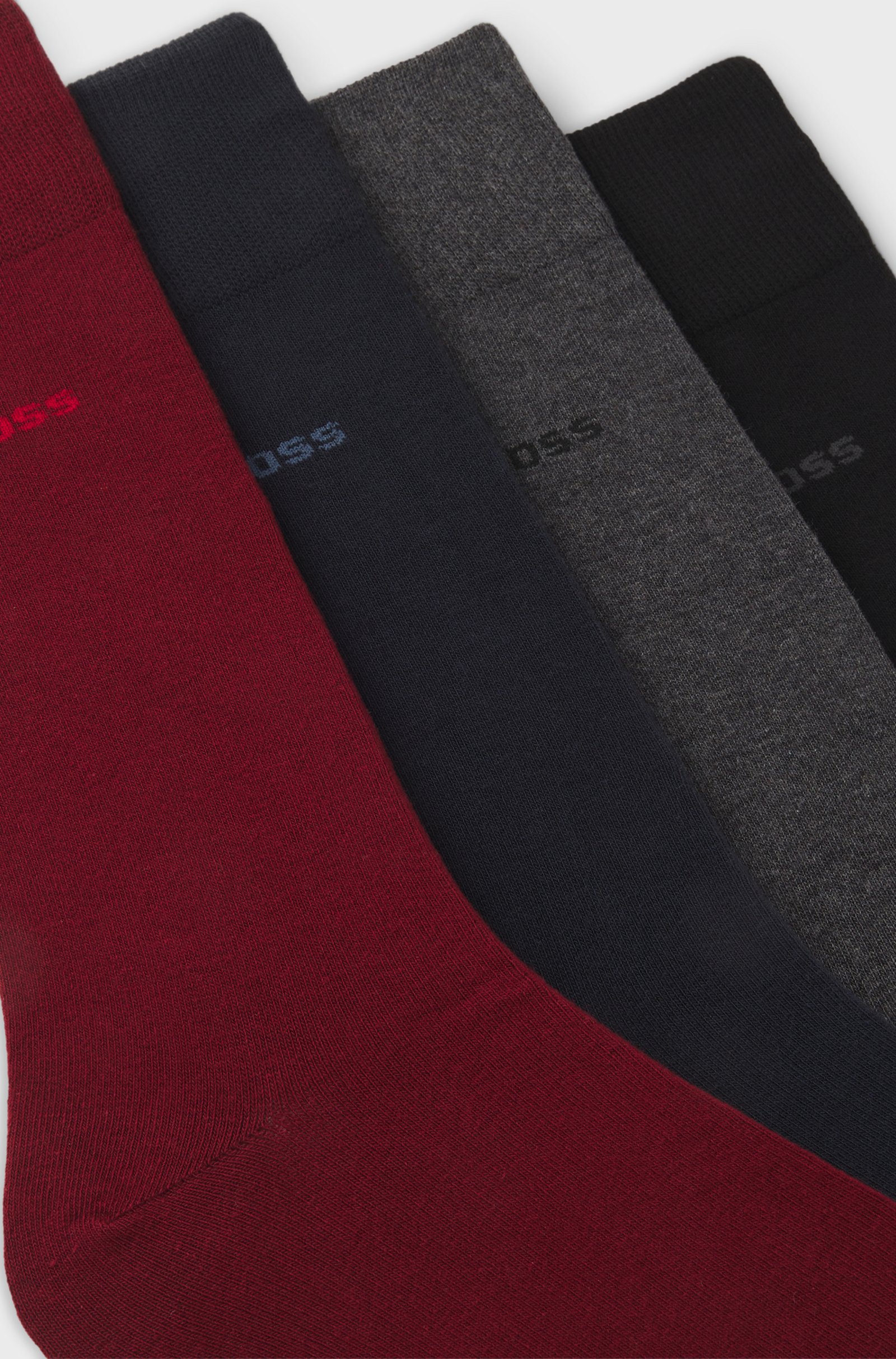 Presented in a gift box, this four-pack of regular-length BOSS Menswear socks carries subtle logo details. Crafted in a soft, cotton-rich blend. 74% Cotton, 23% Polyester, 2% Elastane, 1% Polyamid