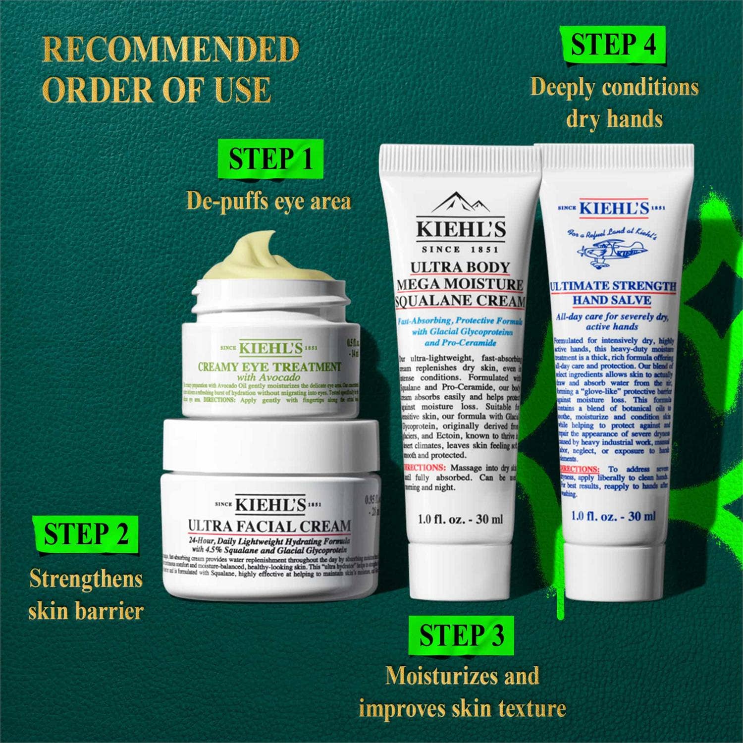 Hátíðar gjafaaskja sem veitir góðan raka frá toppi til táar. Inniheldur: Ultra Facial Cream, Avocado Eye Cream, Lip Balm #1 og Ultimate Strength Hand Salve.