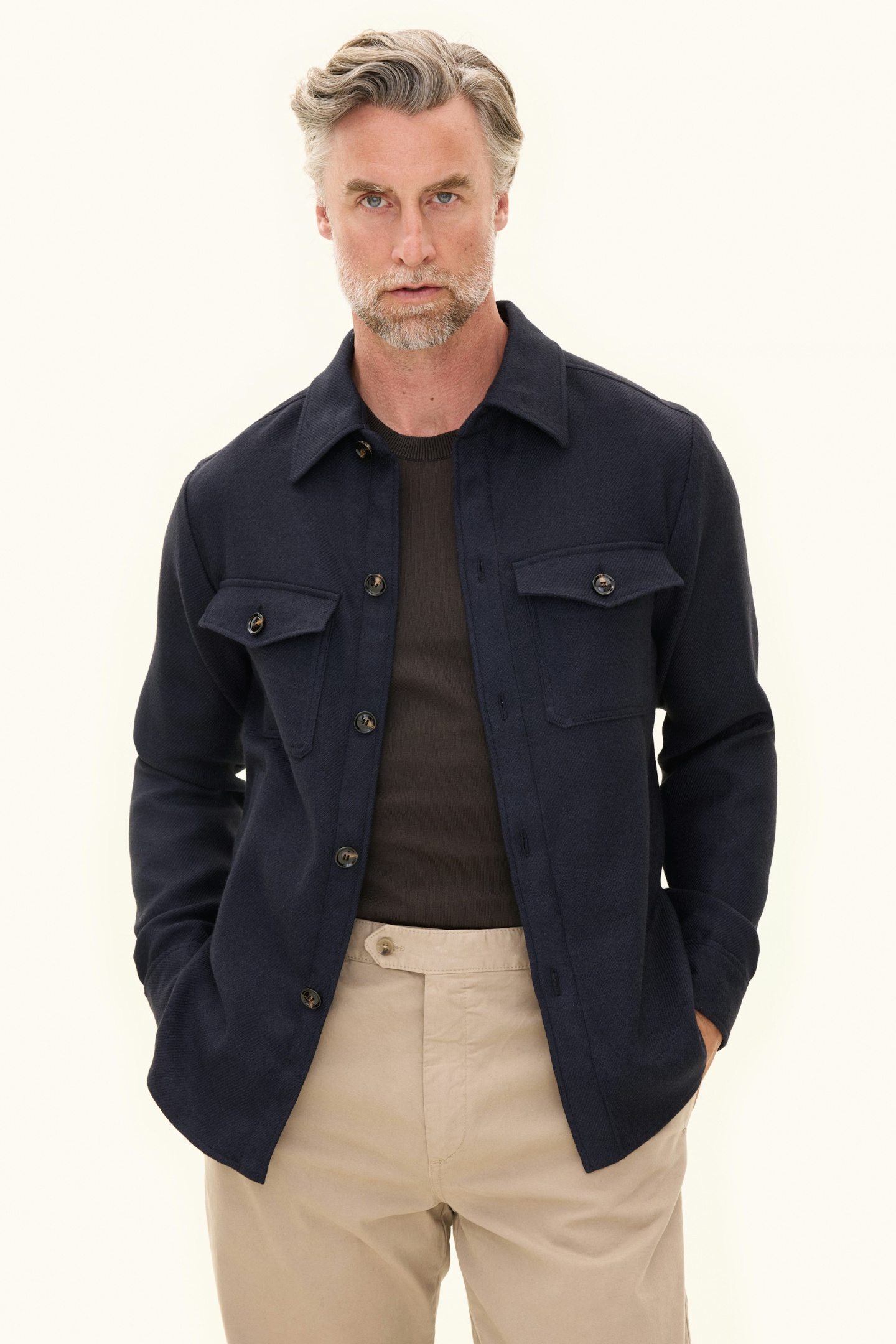 This overshirt in a wool blend is tailored to a regular fit and woven in twill with a brushed finish for a soft touch. A refined layering piece that combines casual comfort with elegance, ... Sjá nánar