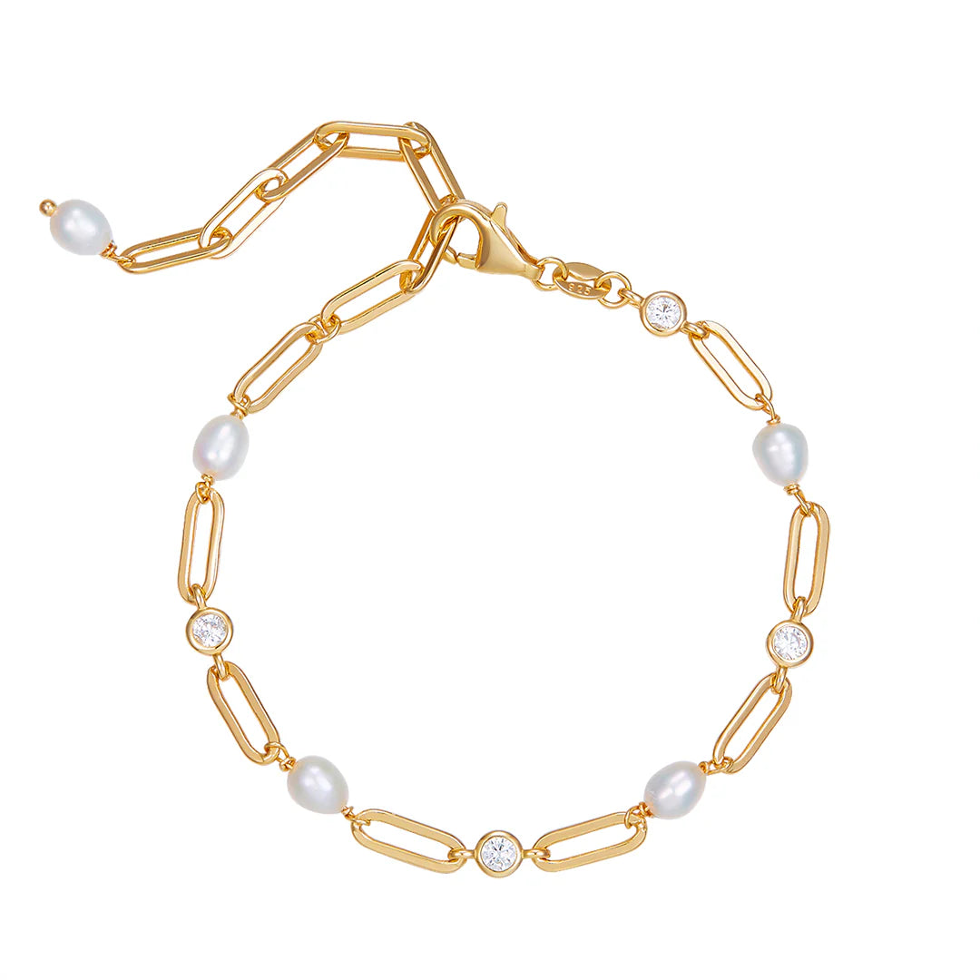 Nexus Divine Pearl - armband VD-3038-YG-CZP Fallegt armband úr línunni Nexus  Gullhúðað silfur Zirkon steinar Ferksvatnsperlur
