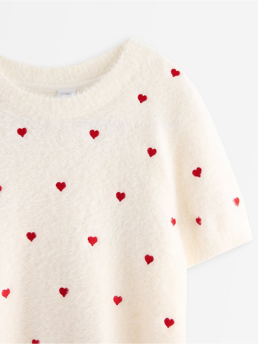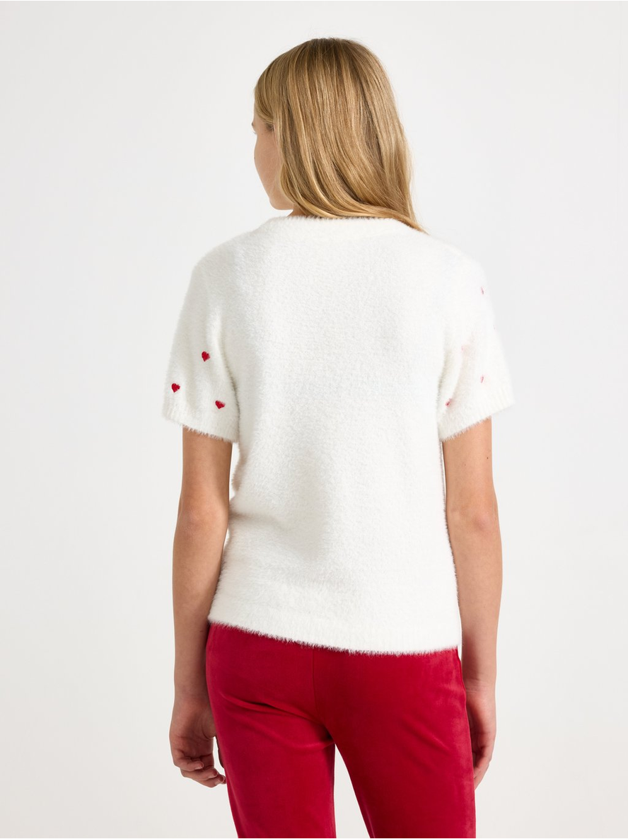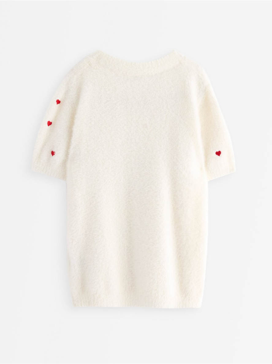 Short-sleeved knitted top in soft feather yarn. Short sleeves 100% pólýamíð