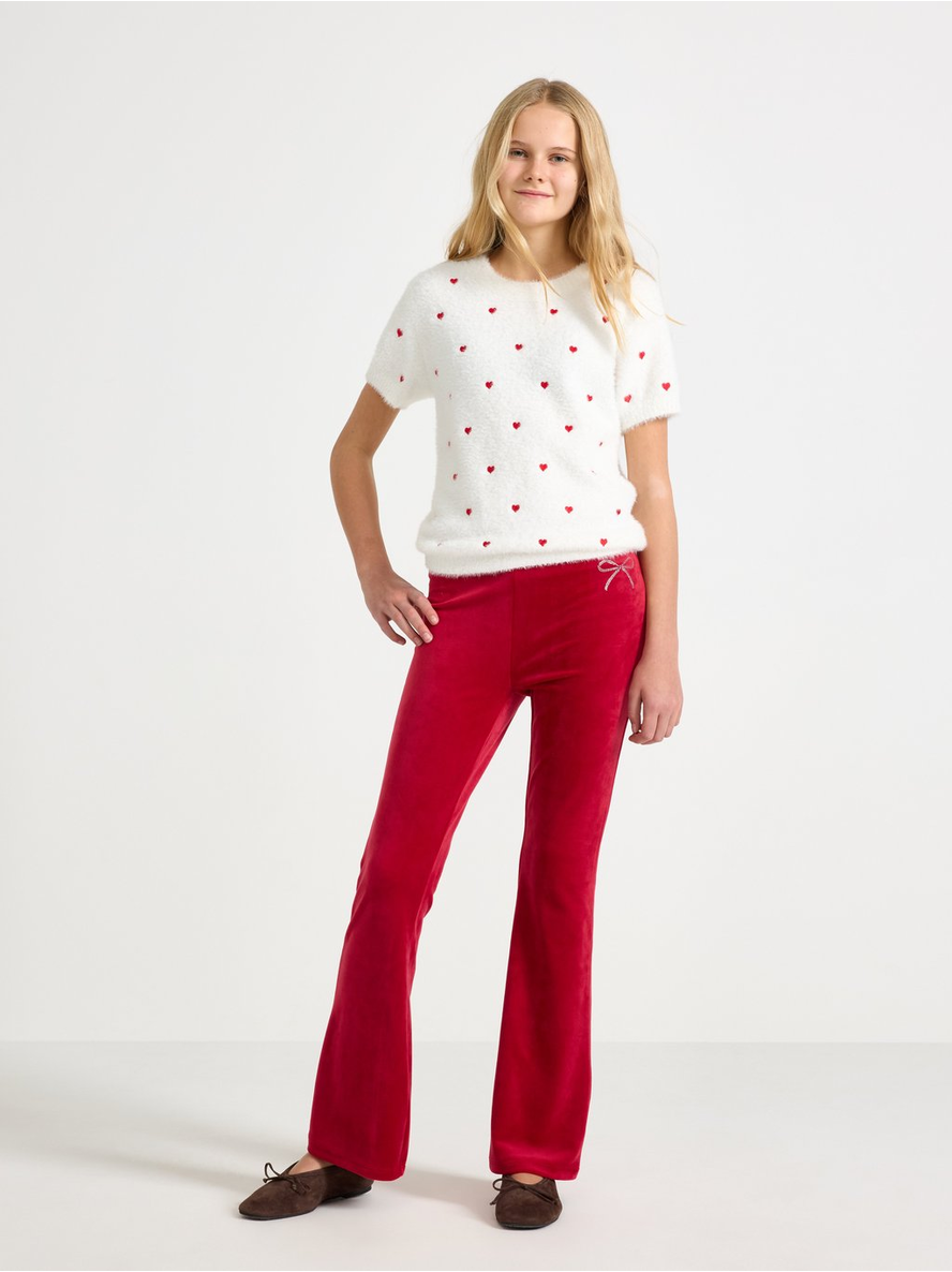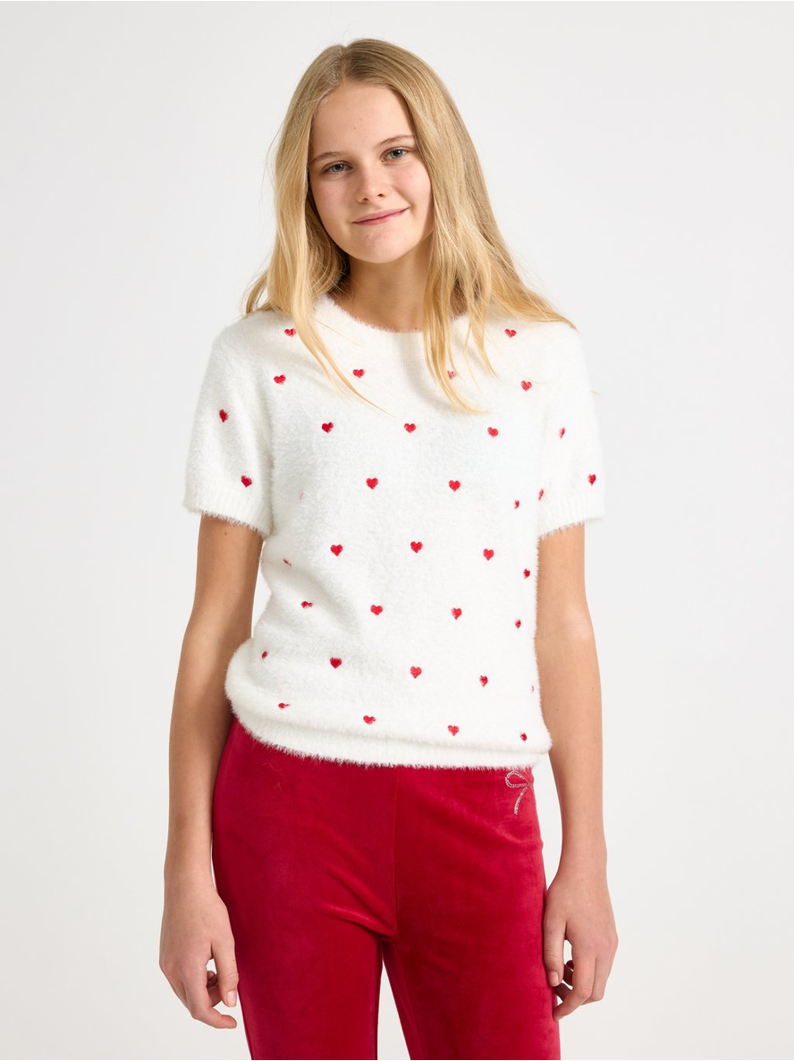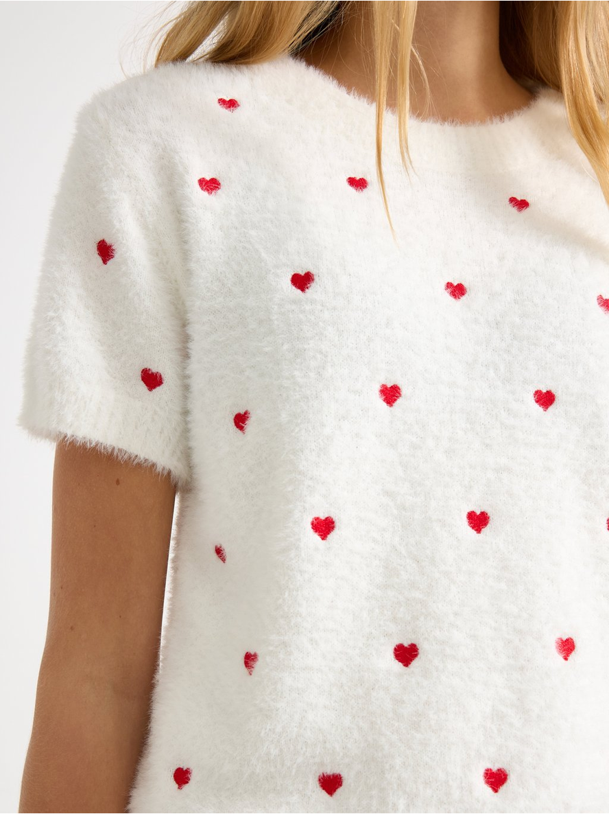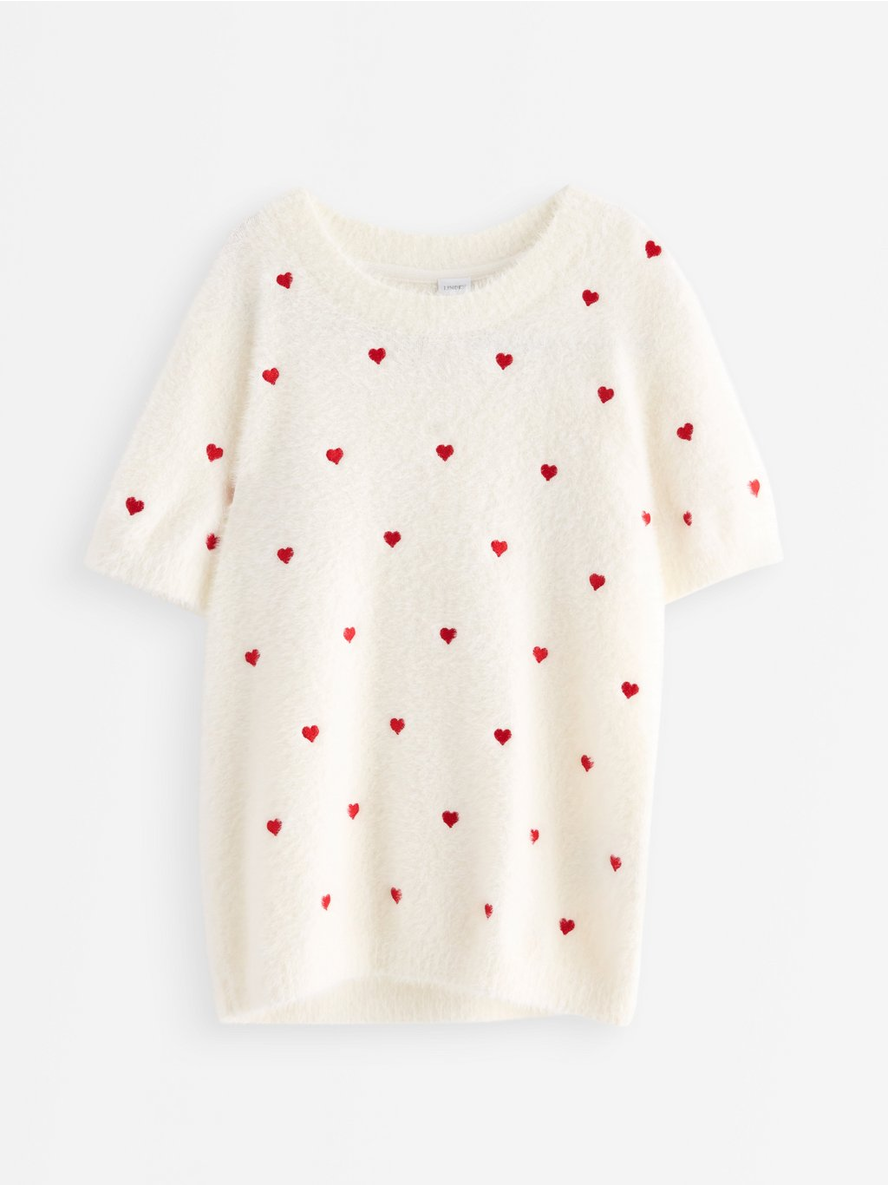 Short-sleeved knitted top in soft feather yarn. Short sleeves 100% pólýamíð