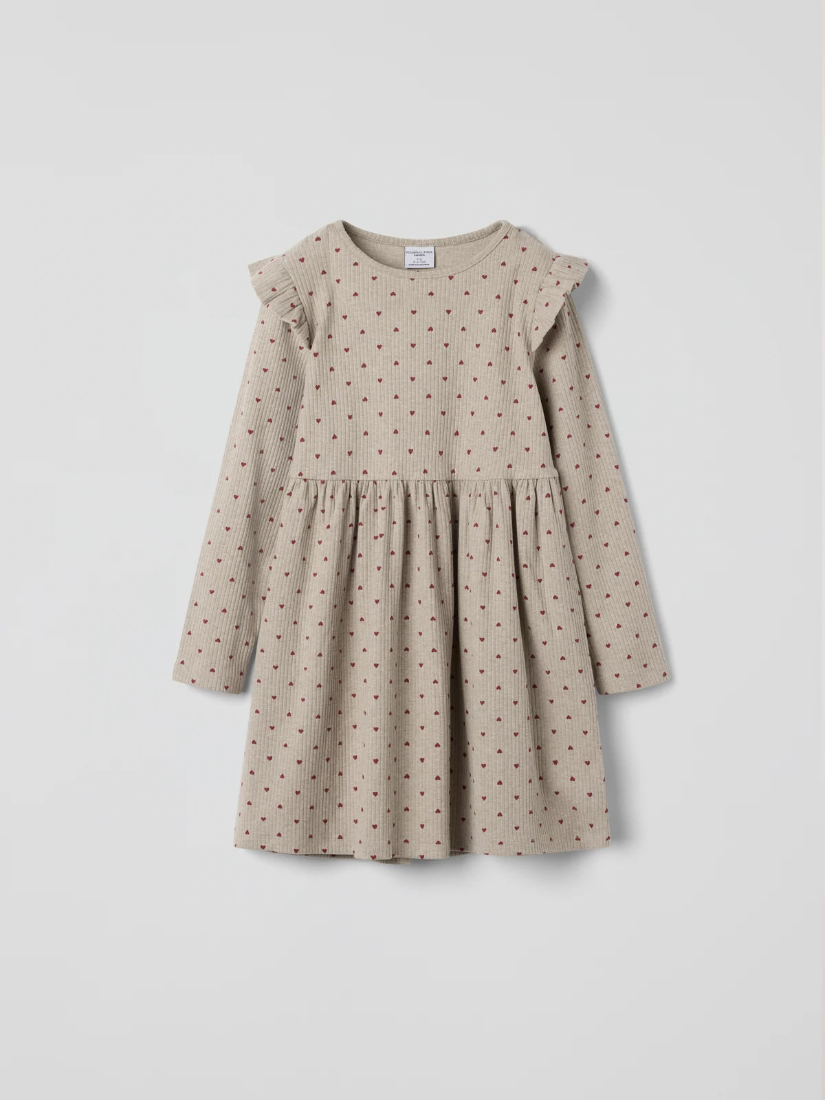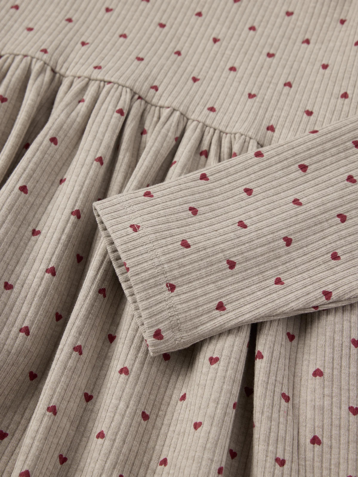 Pretty in soft cotton Ribbed, with soft ruffles Soft ribbed baby dress in organic cotton. The dress is all-over printed with small hearts and decorated with delicate ruffles at the ... Sjá nánar