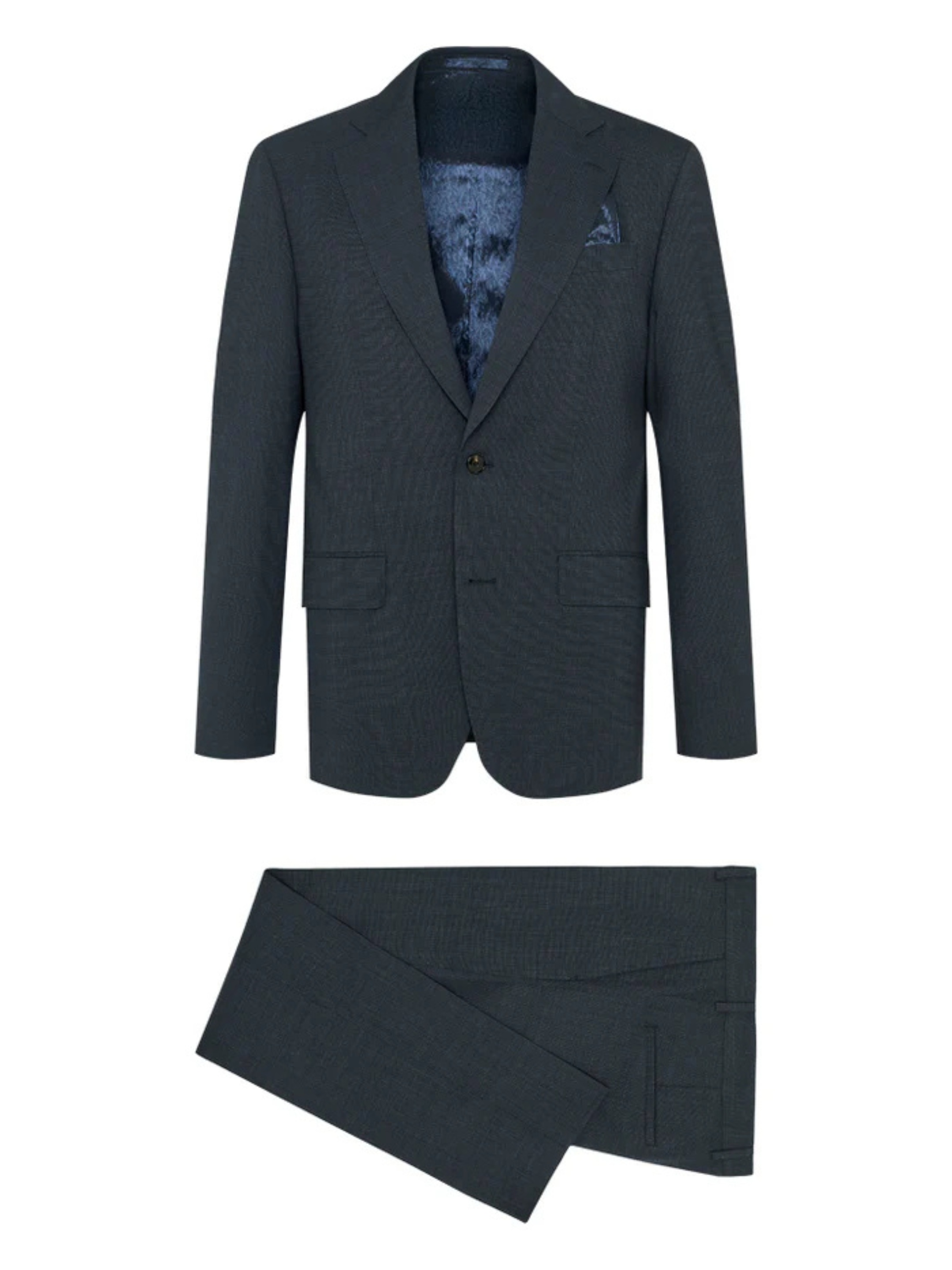 Blazer Classic lapel Light constructed shoulders AMF stitch Chest / Flap pockets Two vents on back Fully lined blazer' Fine Italian fabric Trousers Straight leg Concealed zip with button Hook ... Sjá nánar