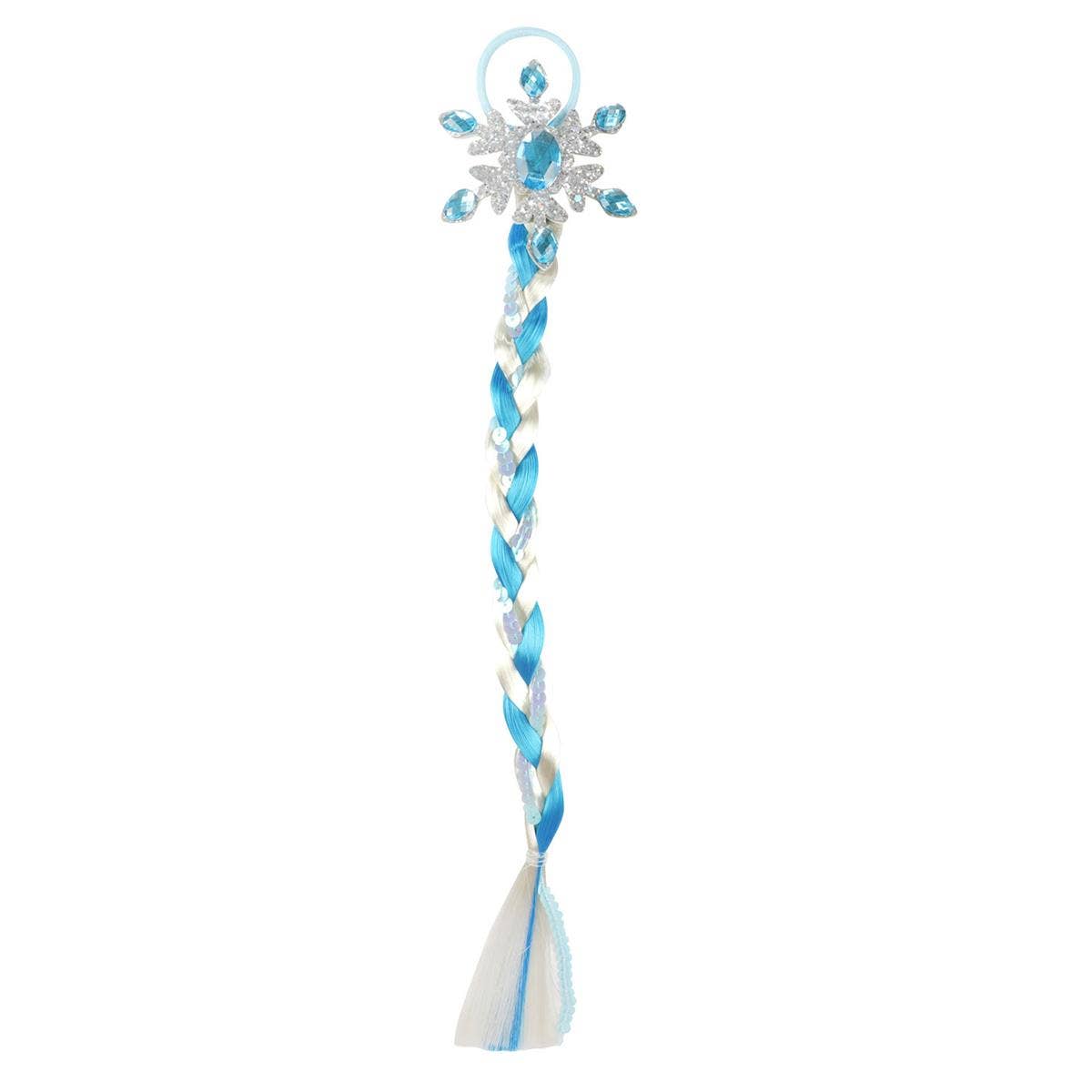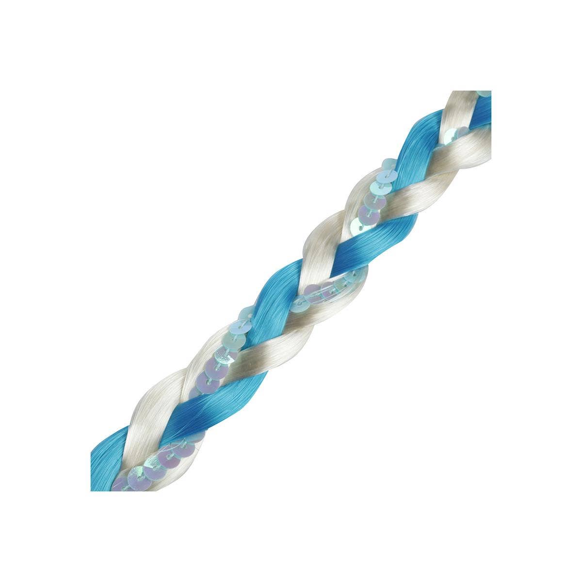 Flott flétta með ljósu og bláu hári og ískristalsskrauti.