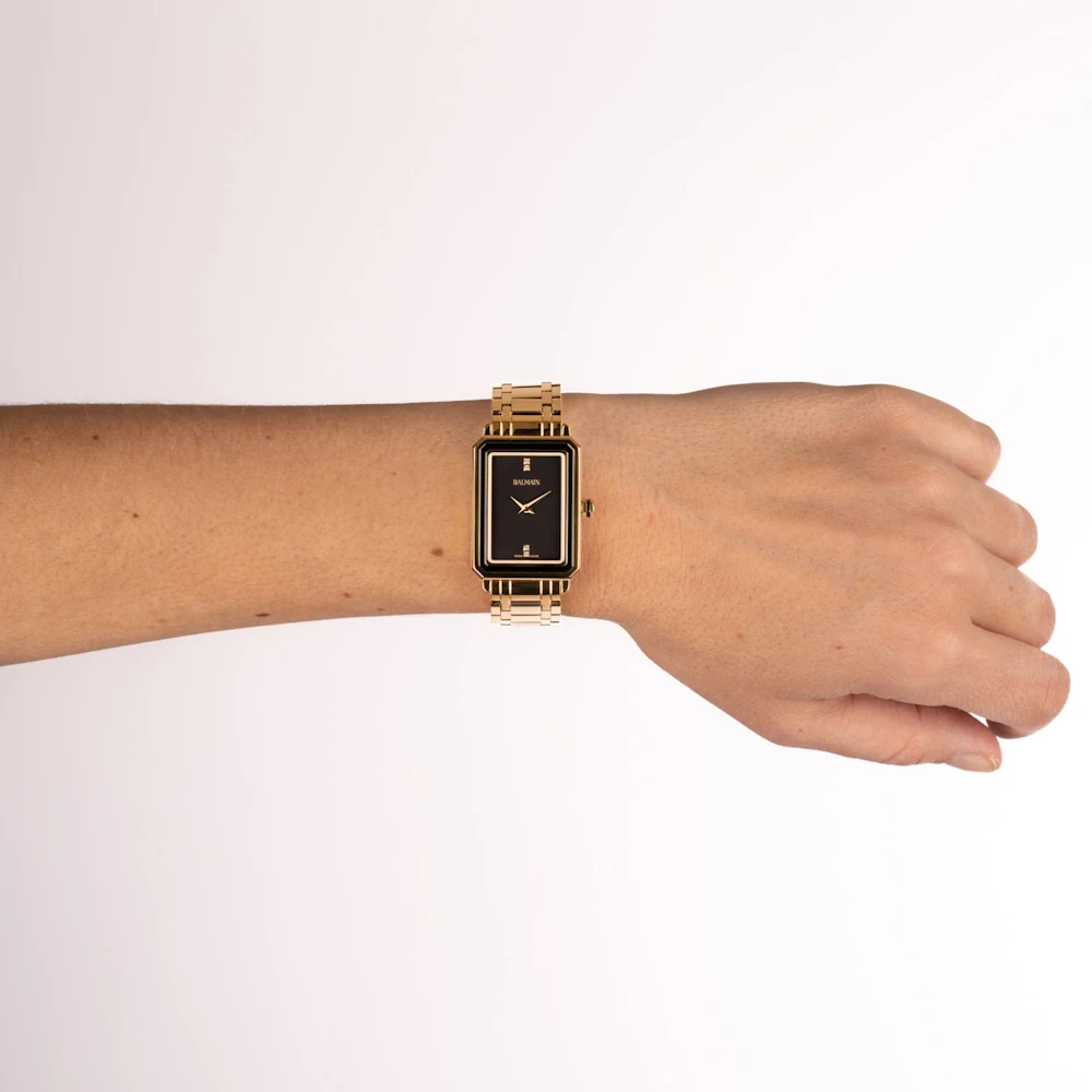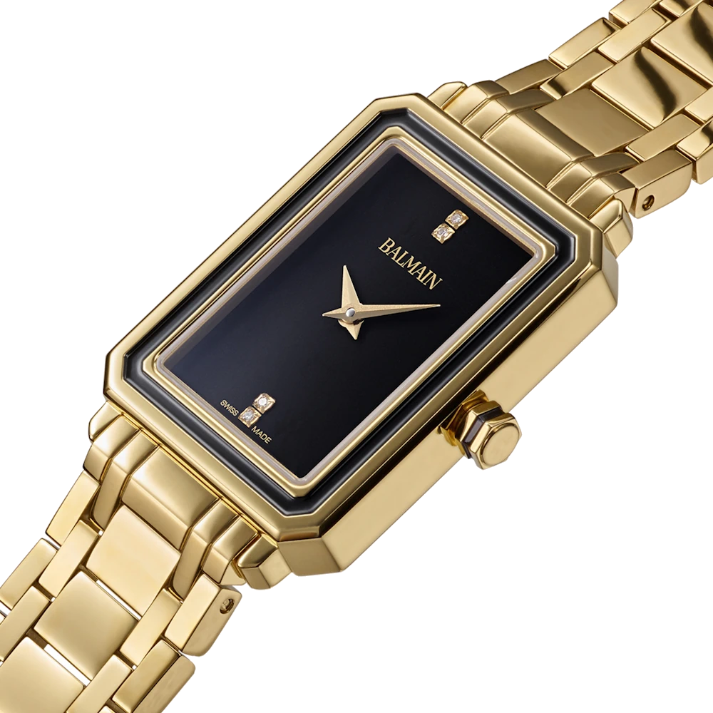 Úrkassi: 25 x 33mm – gyllt stál Úrverk: Rafhlaða – svissneskt Vatnsvörn: 30M Skífa: Svört – 4 demantar (Top Wesselton VS-SI – 0,014ct) – vísar Gler: Safírgler – speglunarvörn Keðja: Gyllt stál ... Sjá nánar