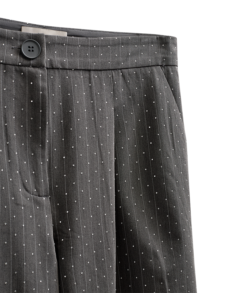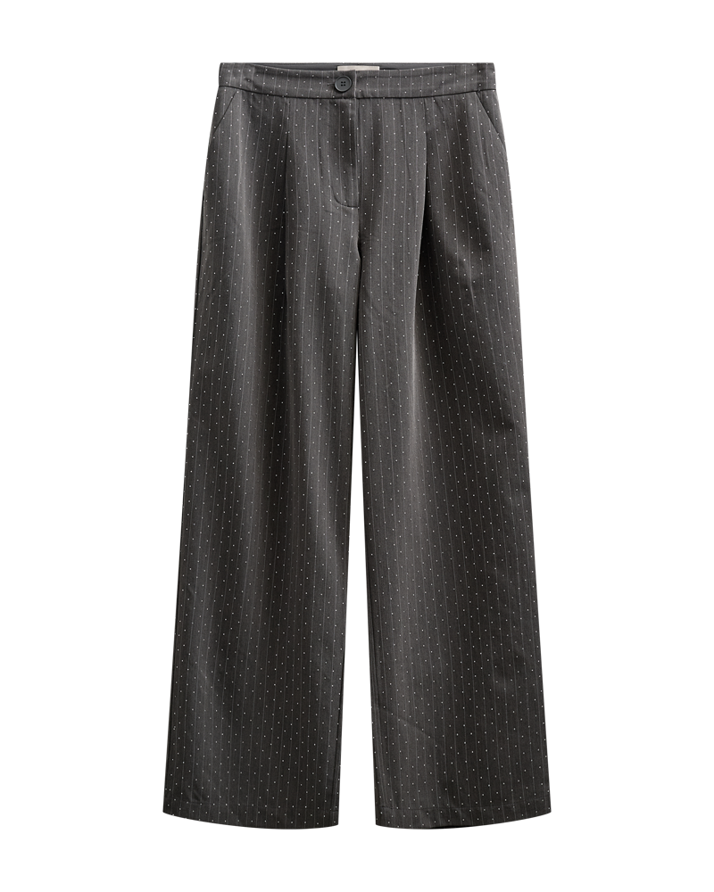 Geggjaðar dragtarbuxur með steinum á frá Free/Quent. Einnig kemur jakki og vesti í stíl. 60%polyester 35%bómull 5%teygja