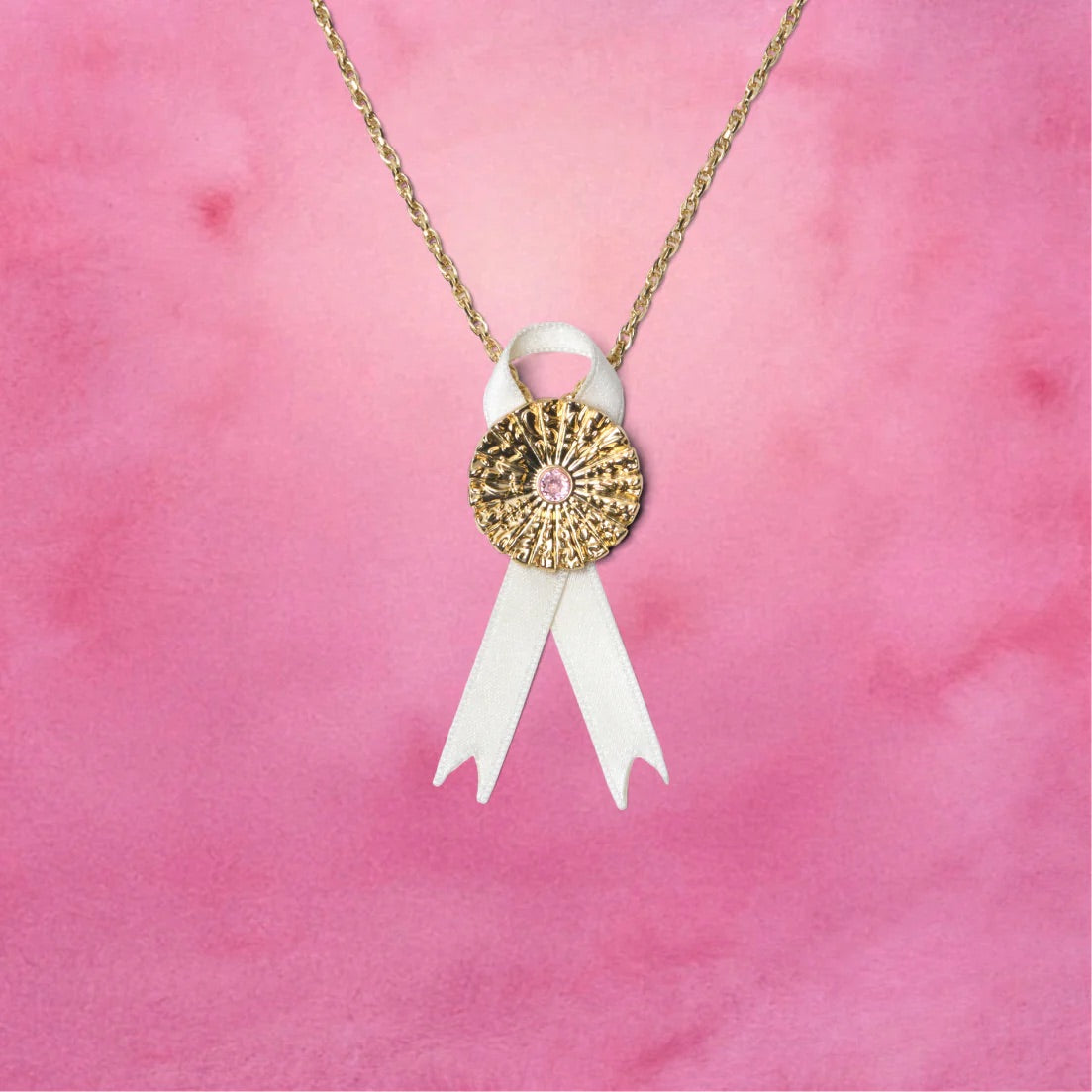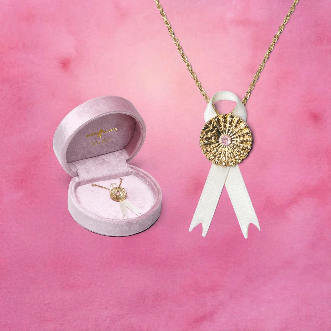 Bleika slaufan // Sparislaufan  Sparislaufan í ár er gullhúðað koparhálsmen í samlitri keðju með rósbleikum Swarovski kristal og slaufu sem hægt er að losa frá. Litur kristalsins minnir á ... Sjá nánar