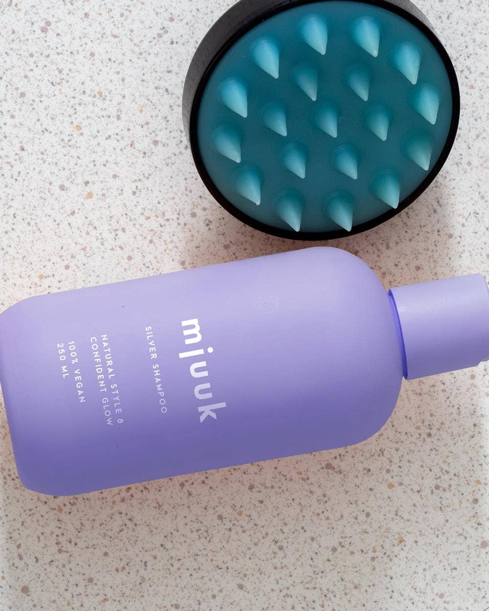 Mjuuk Silver Shampoo er sérstaklega hannað fyrir ljóst, strípur og grátt hár