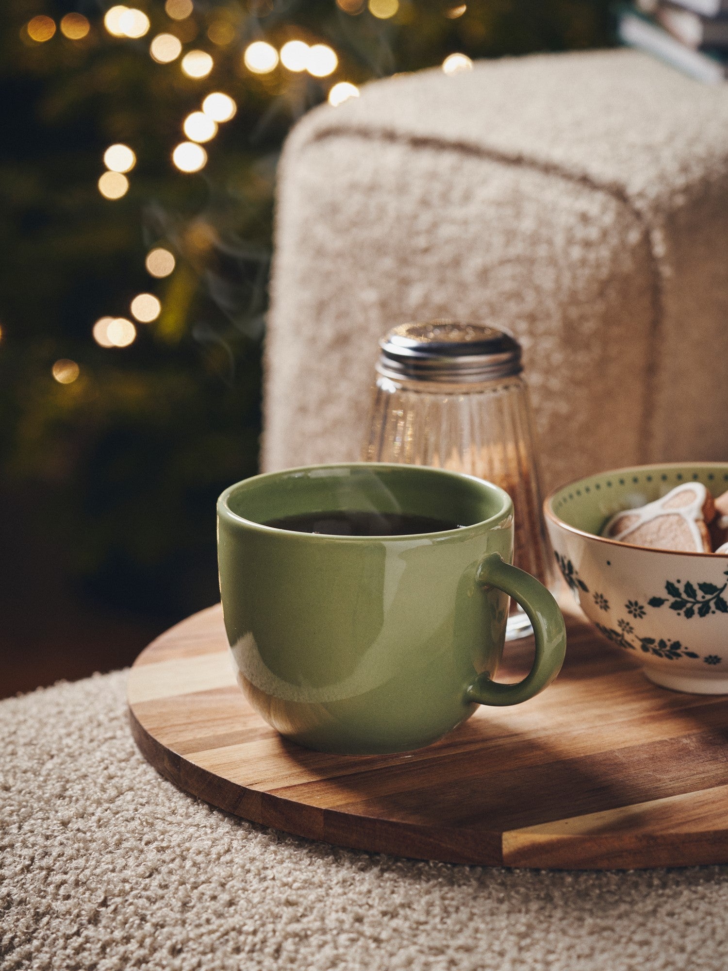 Lovely tableware The sisters' stoneware mug measures 9.5 cm in diameter and 10 cm in height.