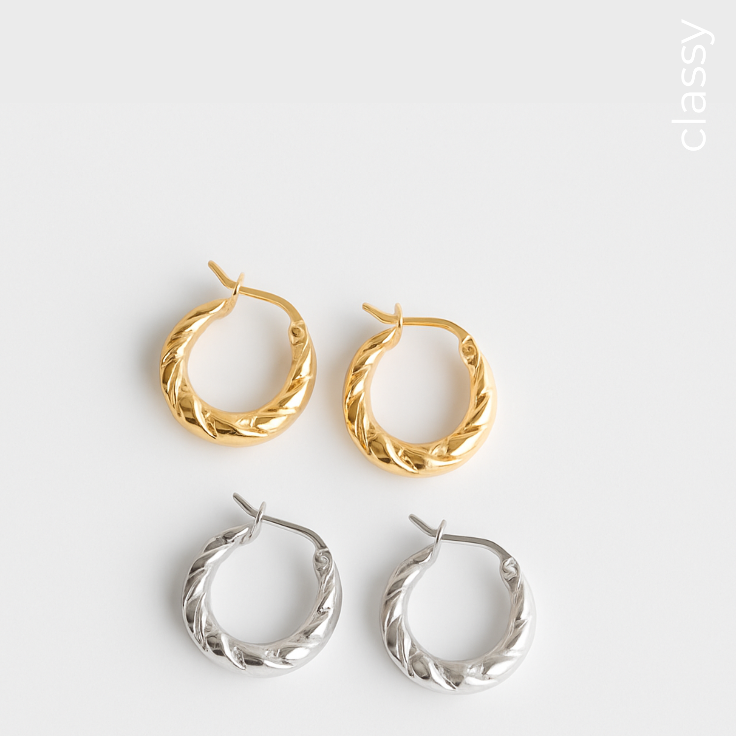 Ryðfrítt og gullhúðað stál. Stærð 20mm.   English: Stainless steal earrings, size 20mm.