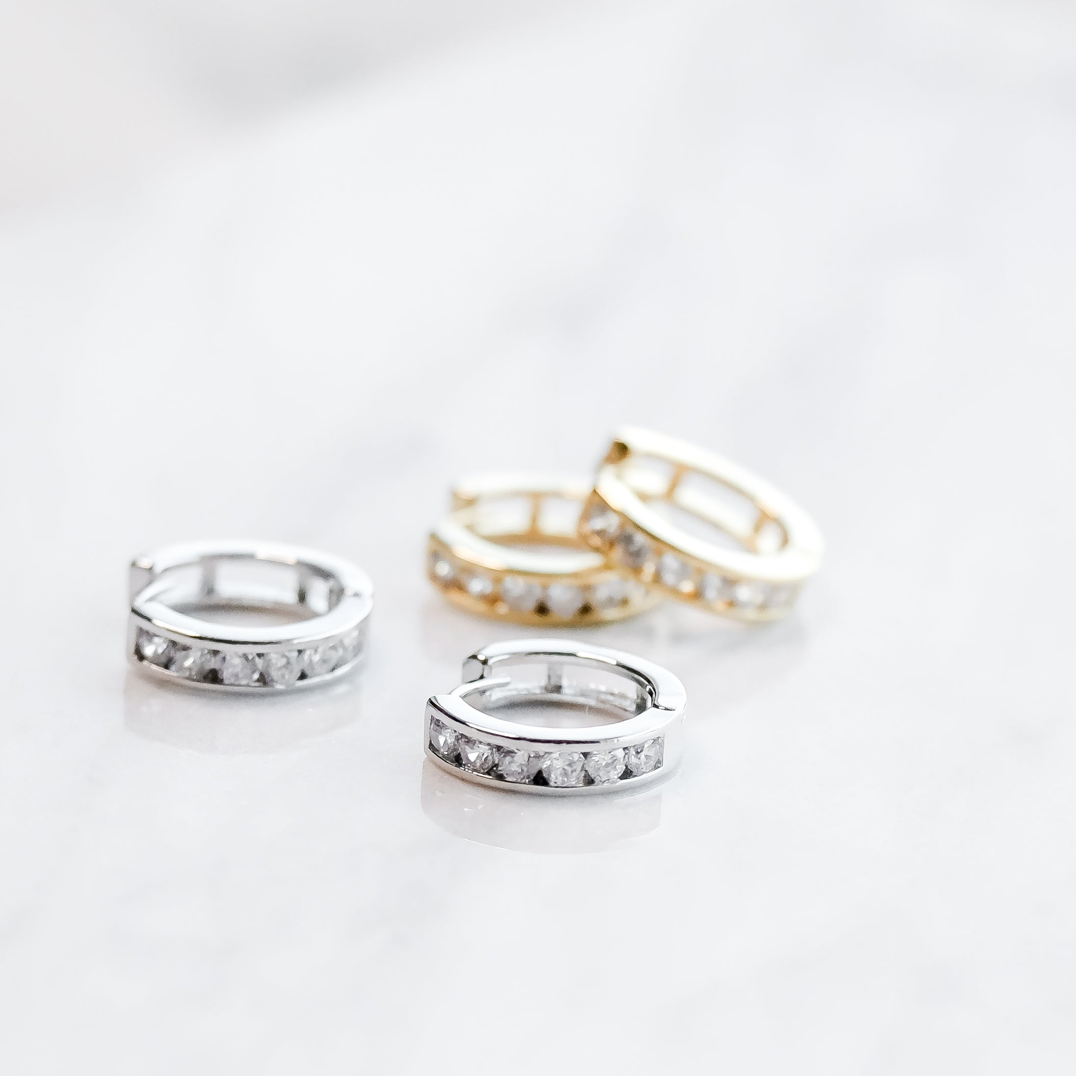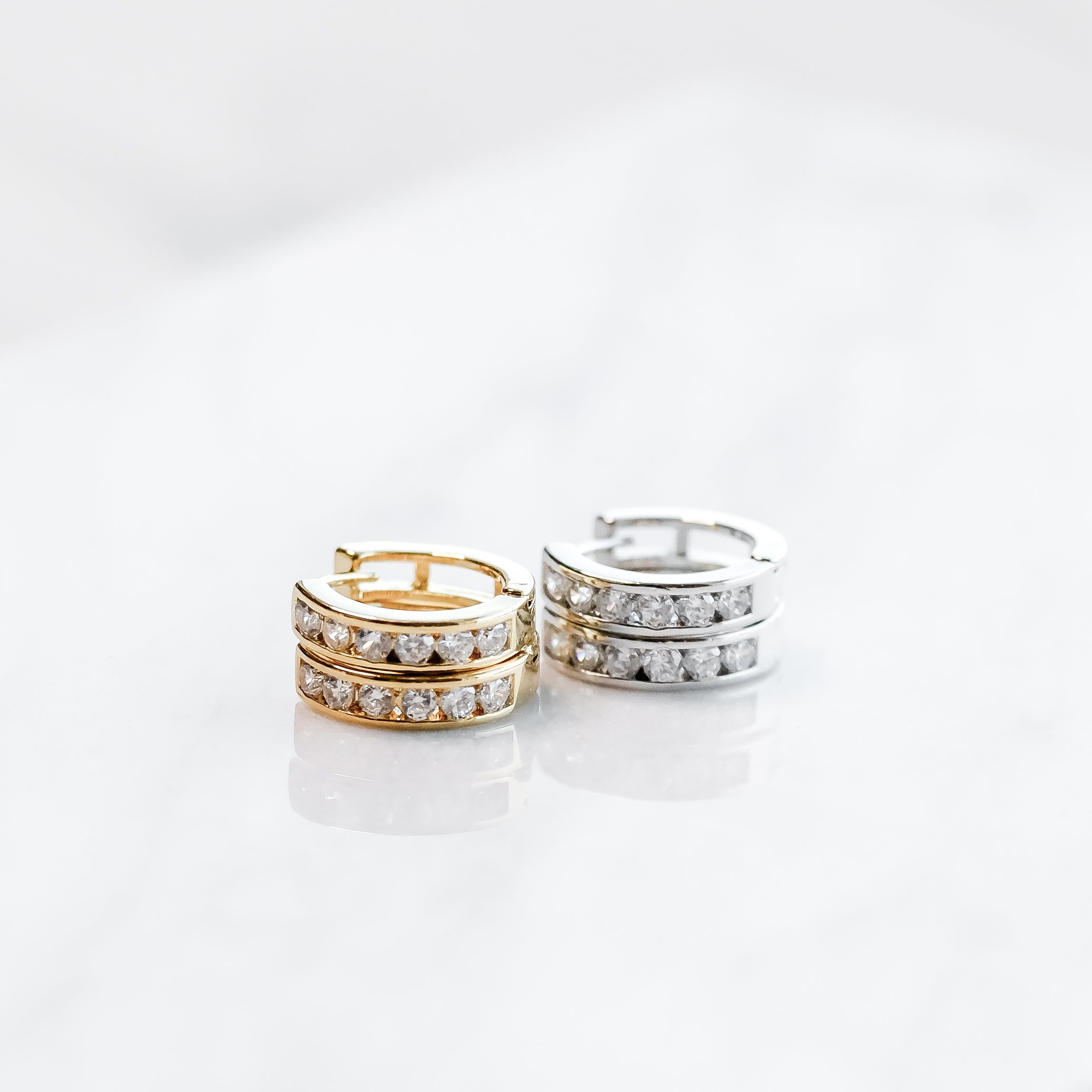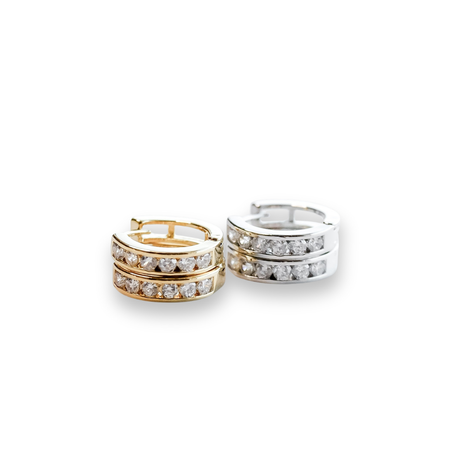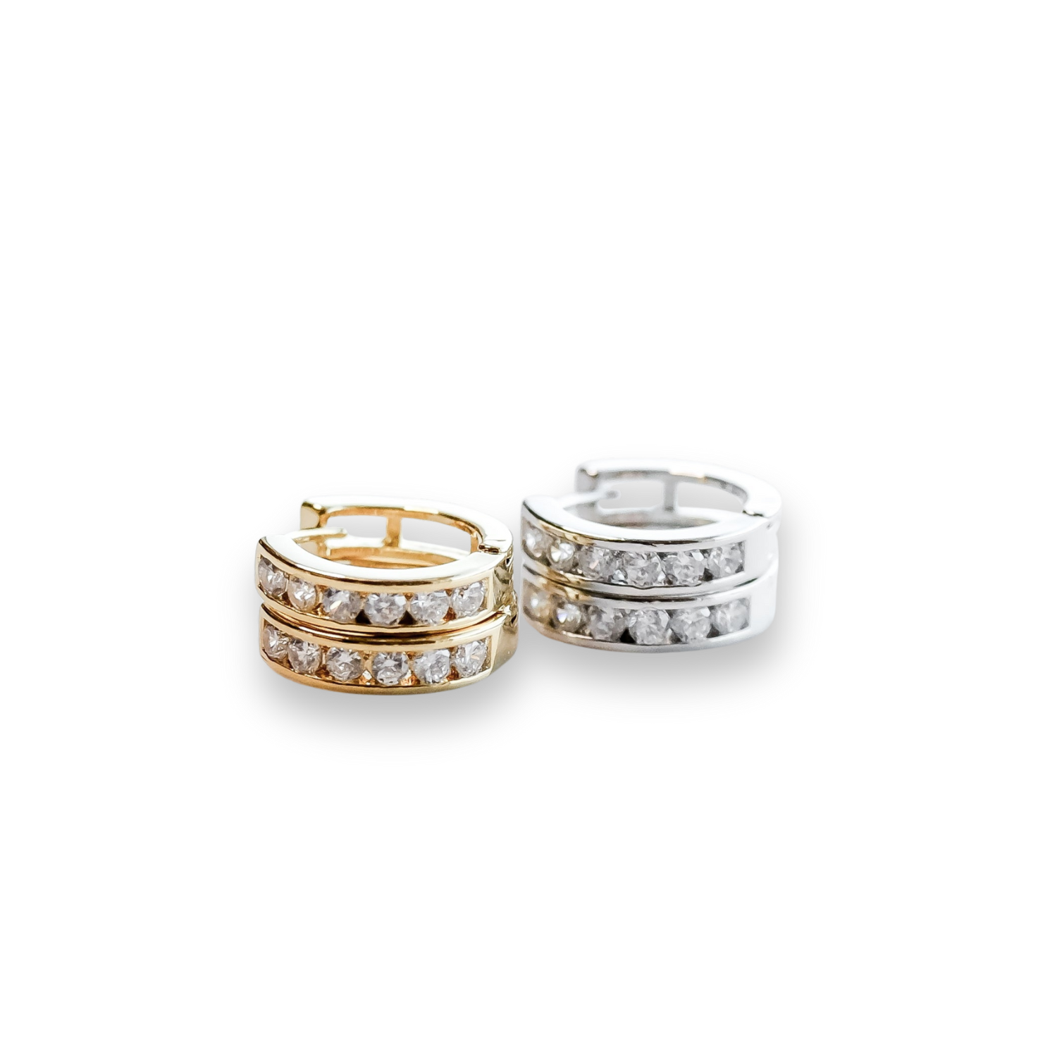 Kara Eyrnalokkar með Glærum Steinum Efni Stál og Sirkonsteinar Þykkt 0.8mm Lengd 12mm
