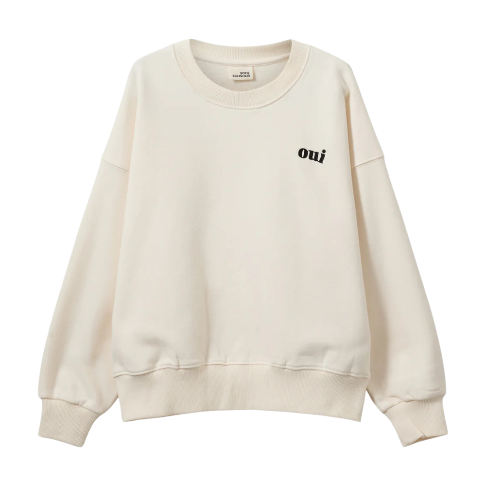 Ljós peysa frá Sofie Schnoor. 87% bómull, 10% polyester og 3% spandex.