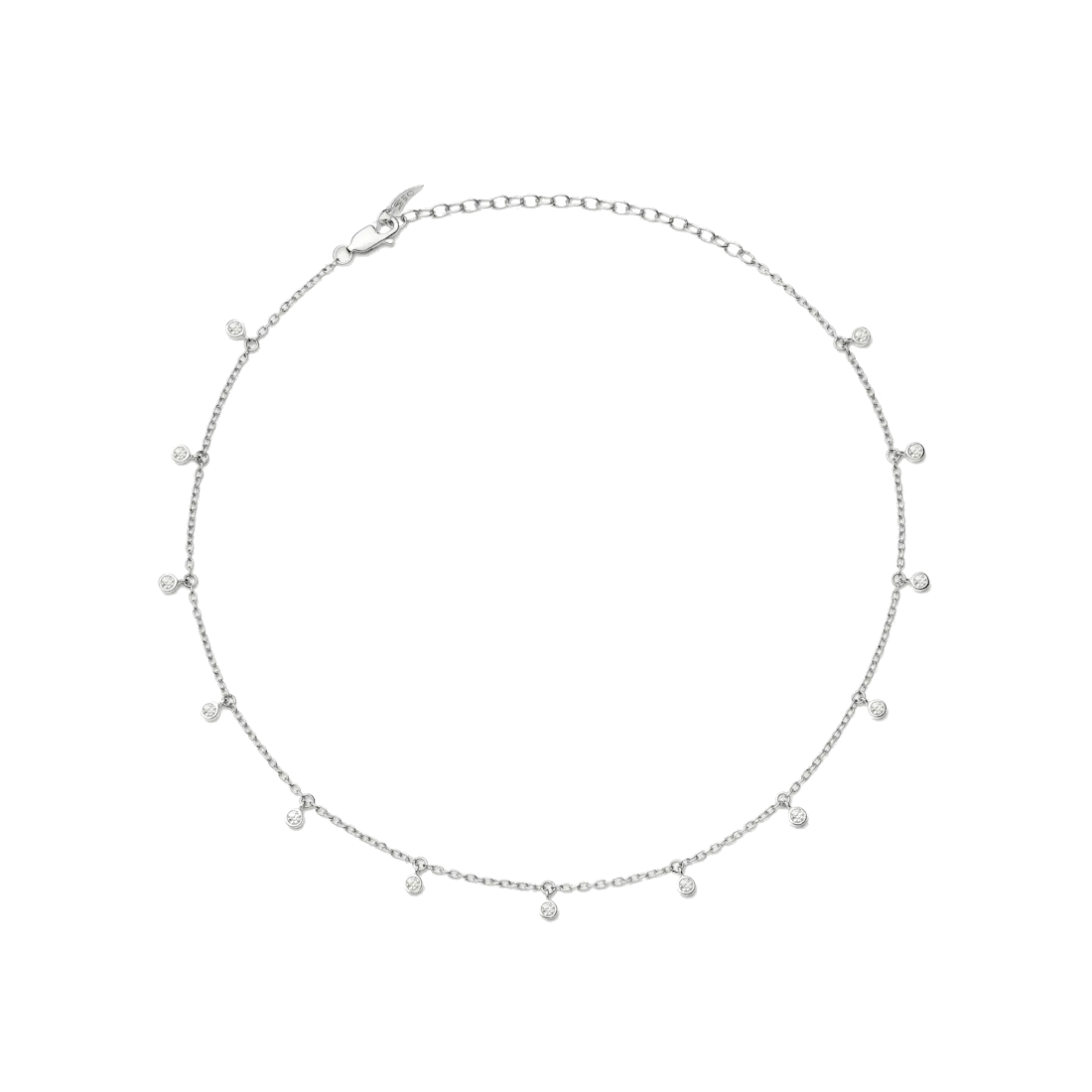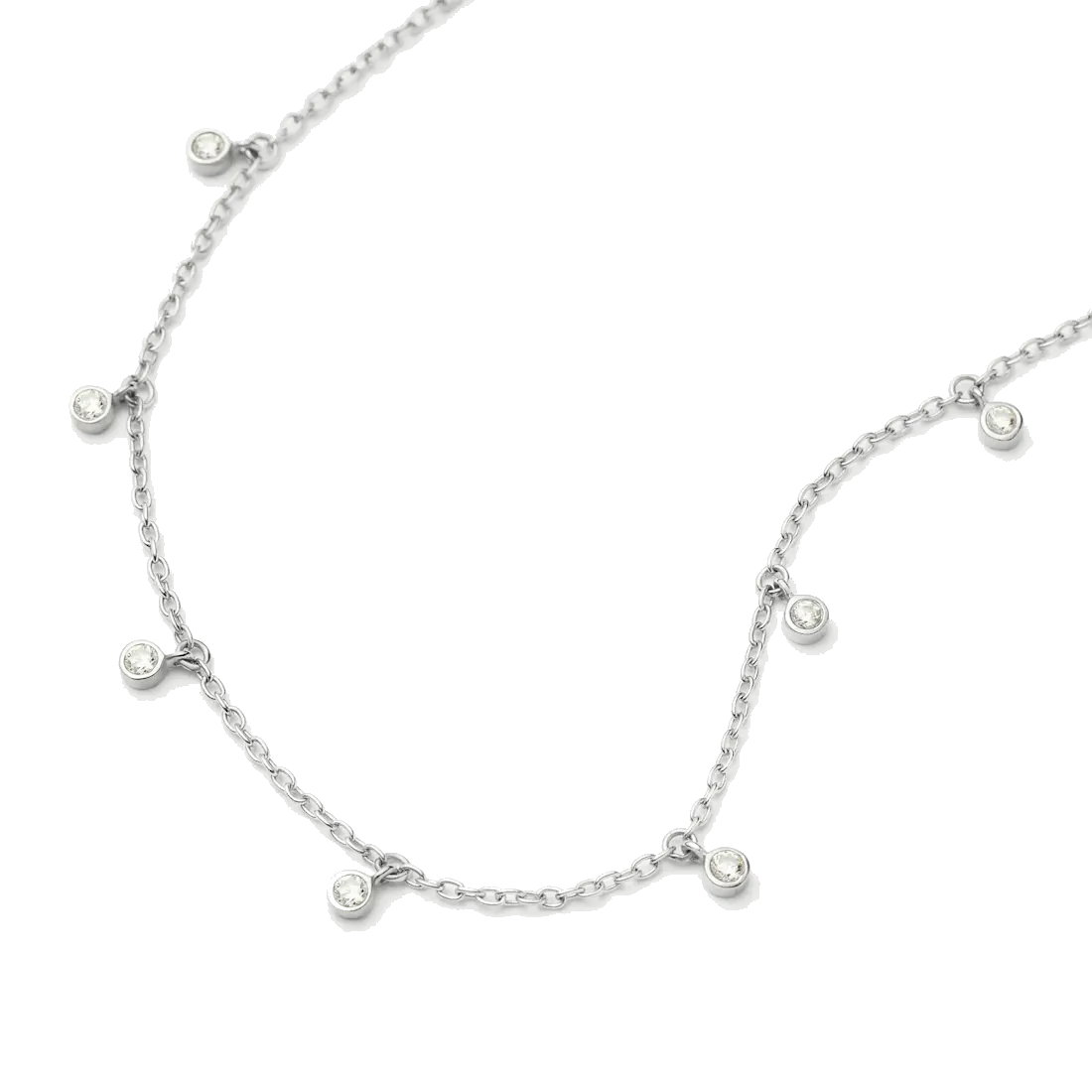 Efni keðju: Rhodiumhúðað silfur Lengd keðju: 31cm upp í 38cm Steinar: Zirkonia - 3mm
