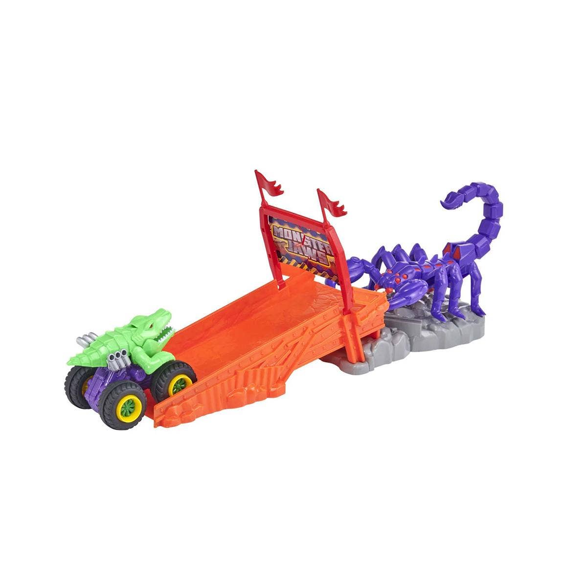 Skemmtilegur skrímslatrukkur með rampi og sporðdreka.