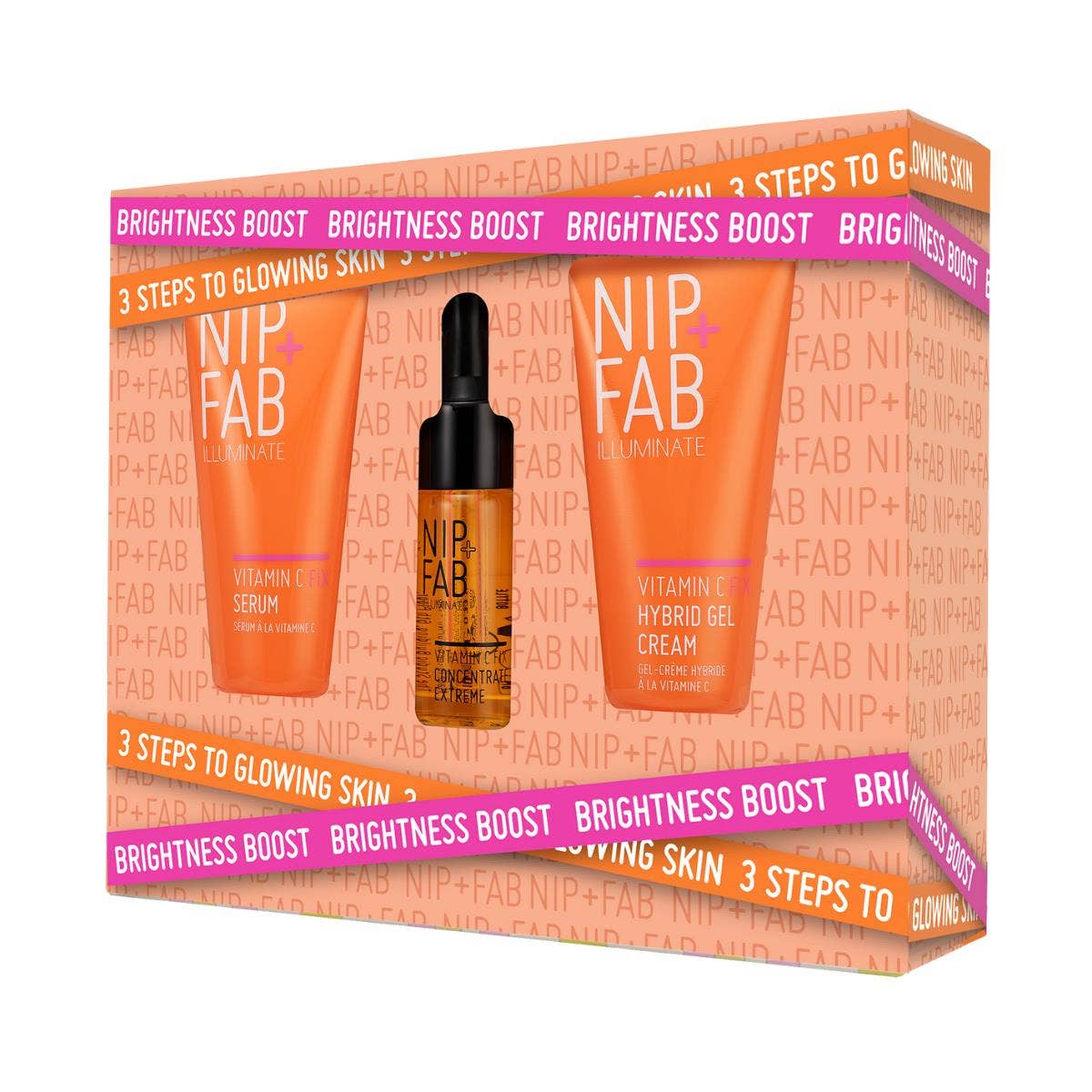C-vítamín Fix Brightening Boost 3 settið leggur áherslu á að bjartara yfirbragð, takast á við litarefni og gefa húðinni ljóma.