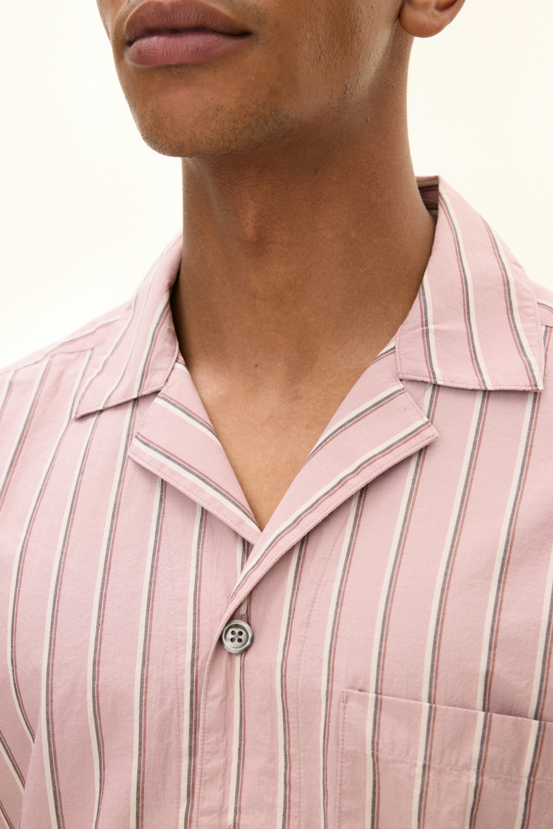 A relaxed regular fit shirt with a bowling collar and a striped cotton pattern. The printed finish adds a subtle character, making it a versatile go-to for the summer wardrobe. Regular fit ... Sjá nánar