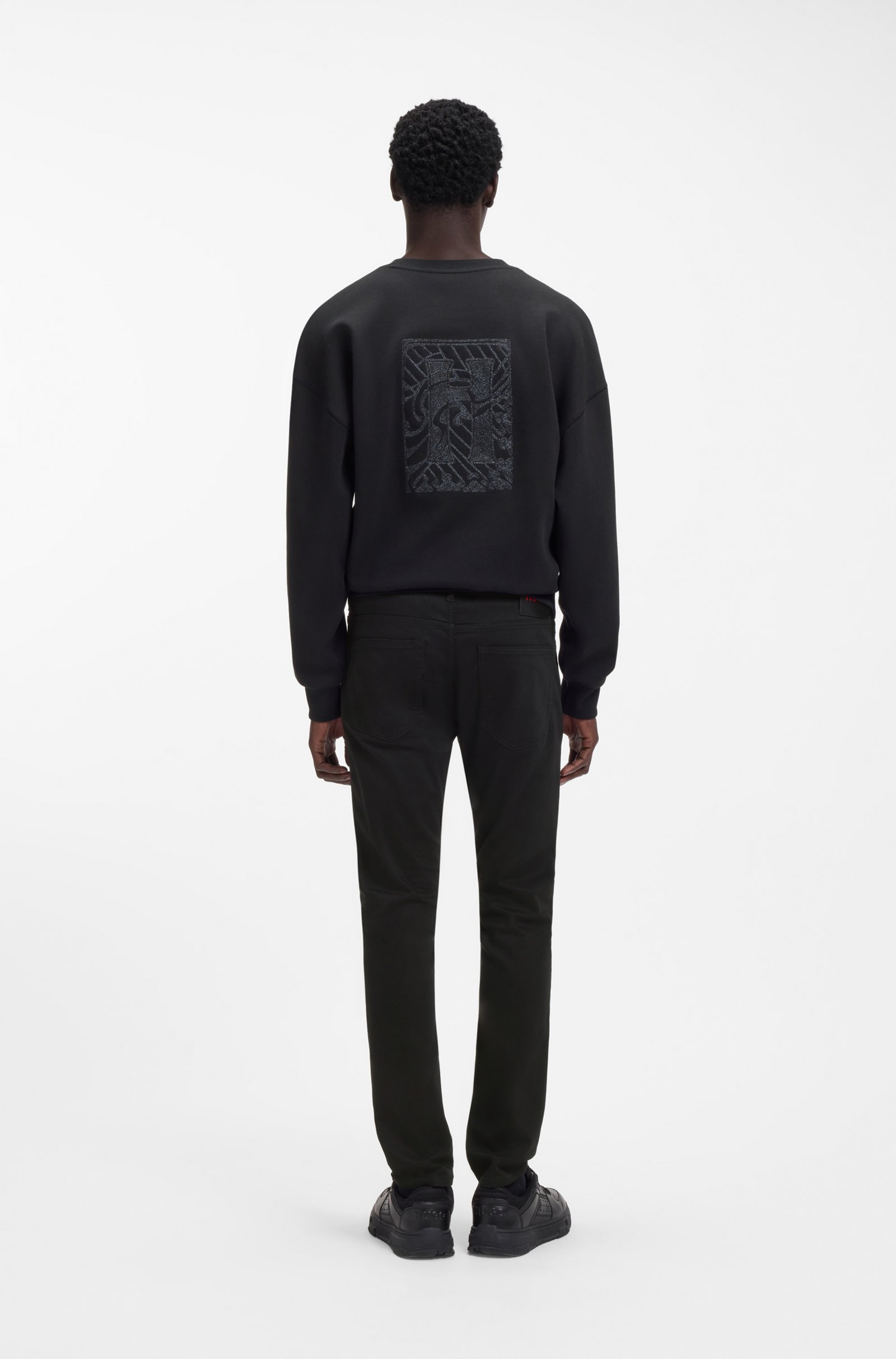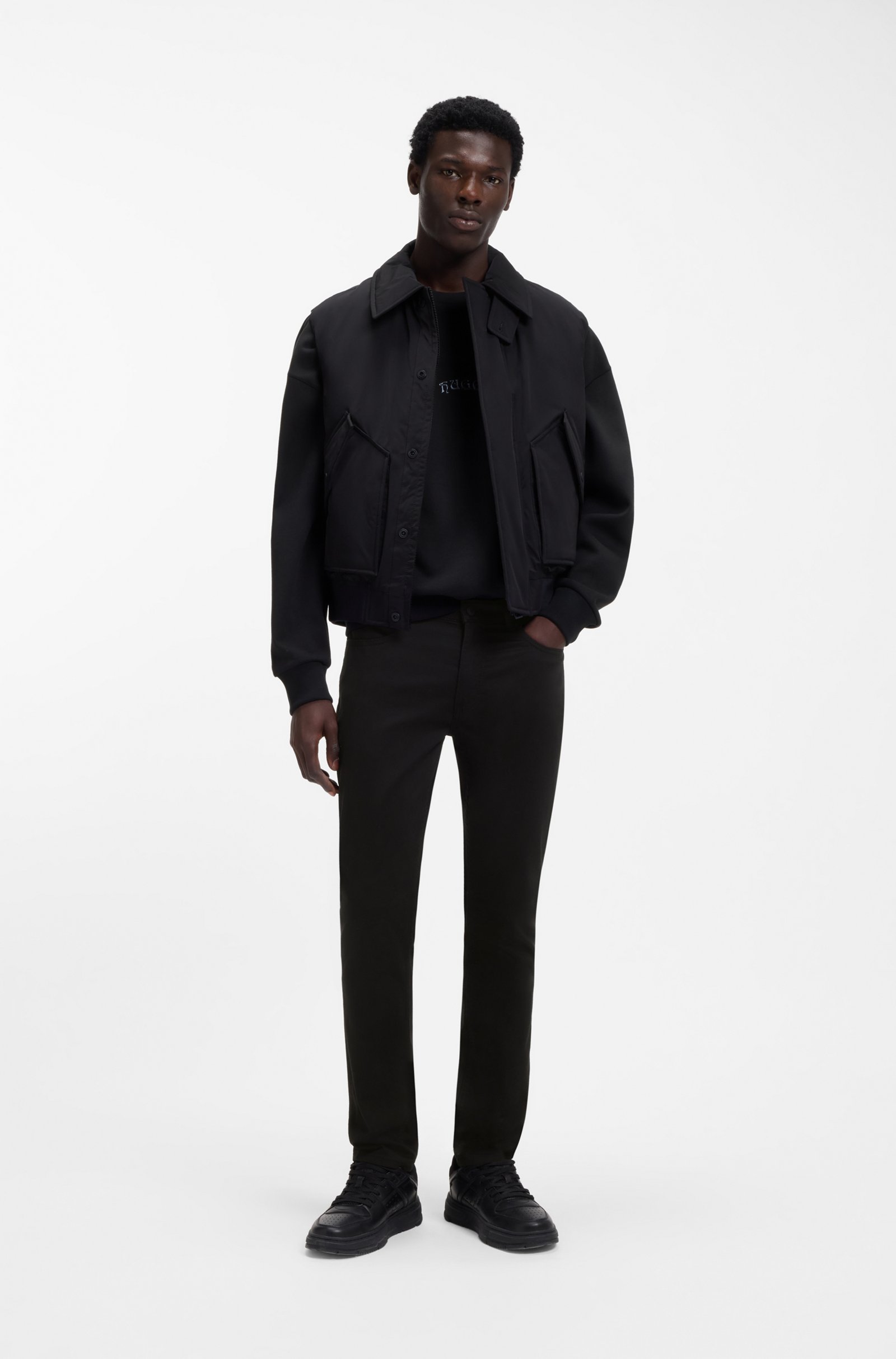 With an intense black shade and extra-soft touch, these HUGO Menswear jeans are easy to style up and down. Super-slim fit. Extra-slim fit Mid rise Button and zip closure Pockets bottom front: ... Sjá nánar