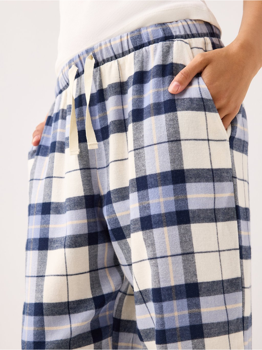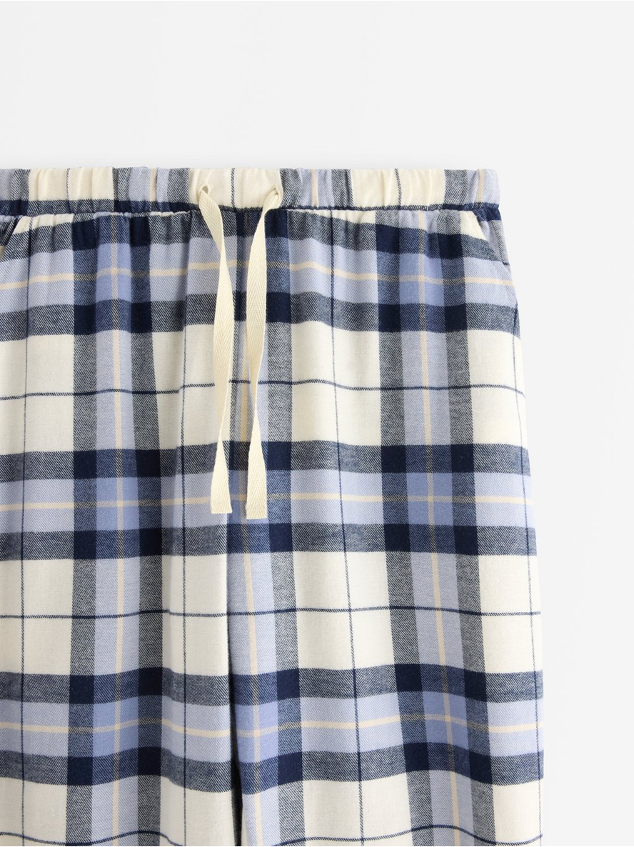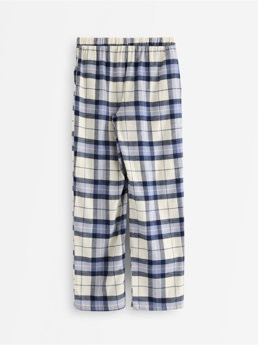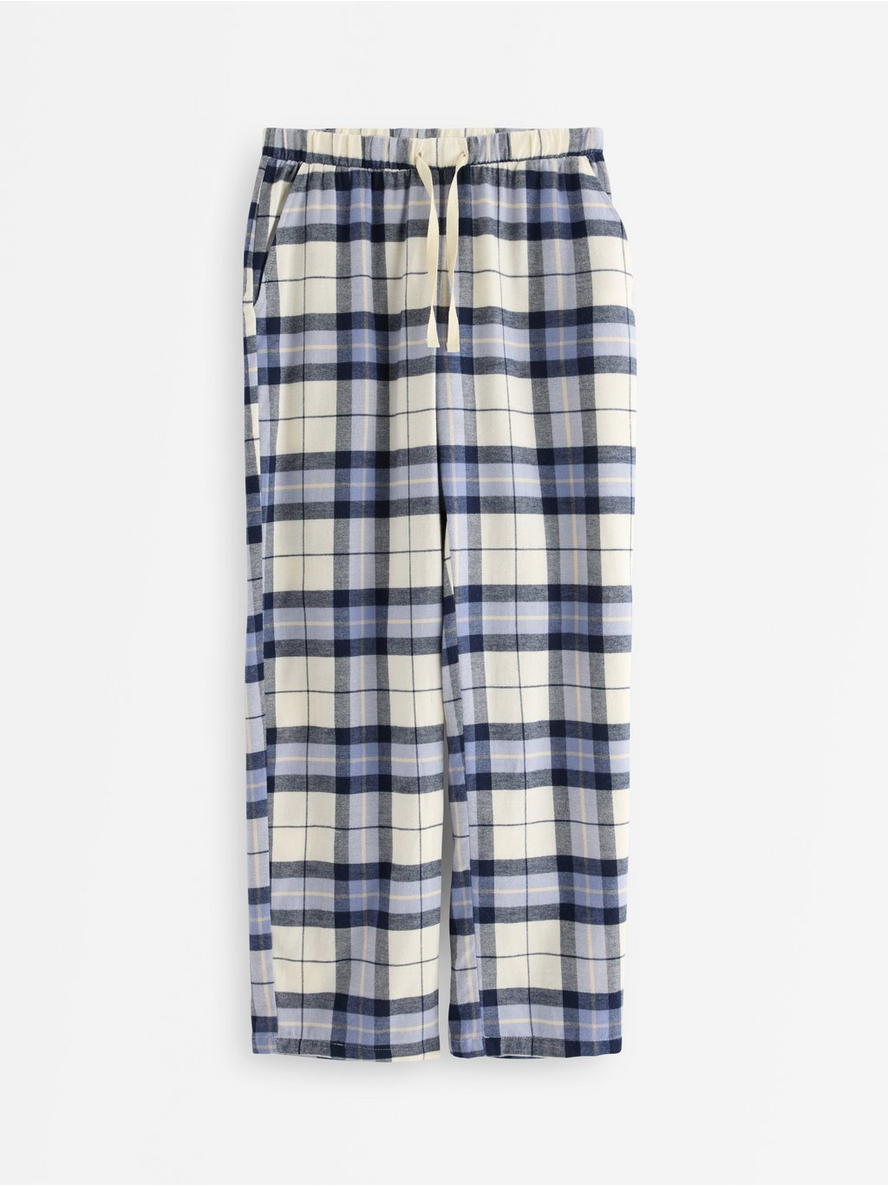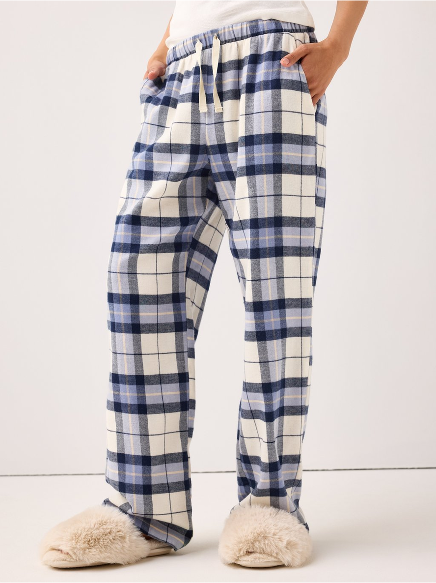 Comfy pyjama trousers in soft cotton flannel with a relaxed fit. Elastic waist with drawstring Side pockets Contains 75% Cotton in Conversion Length: 77 cm in size M 100% bómull