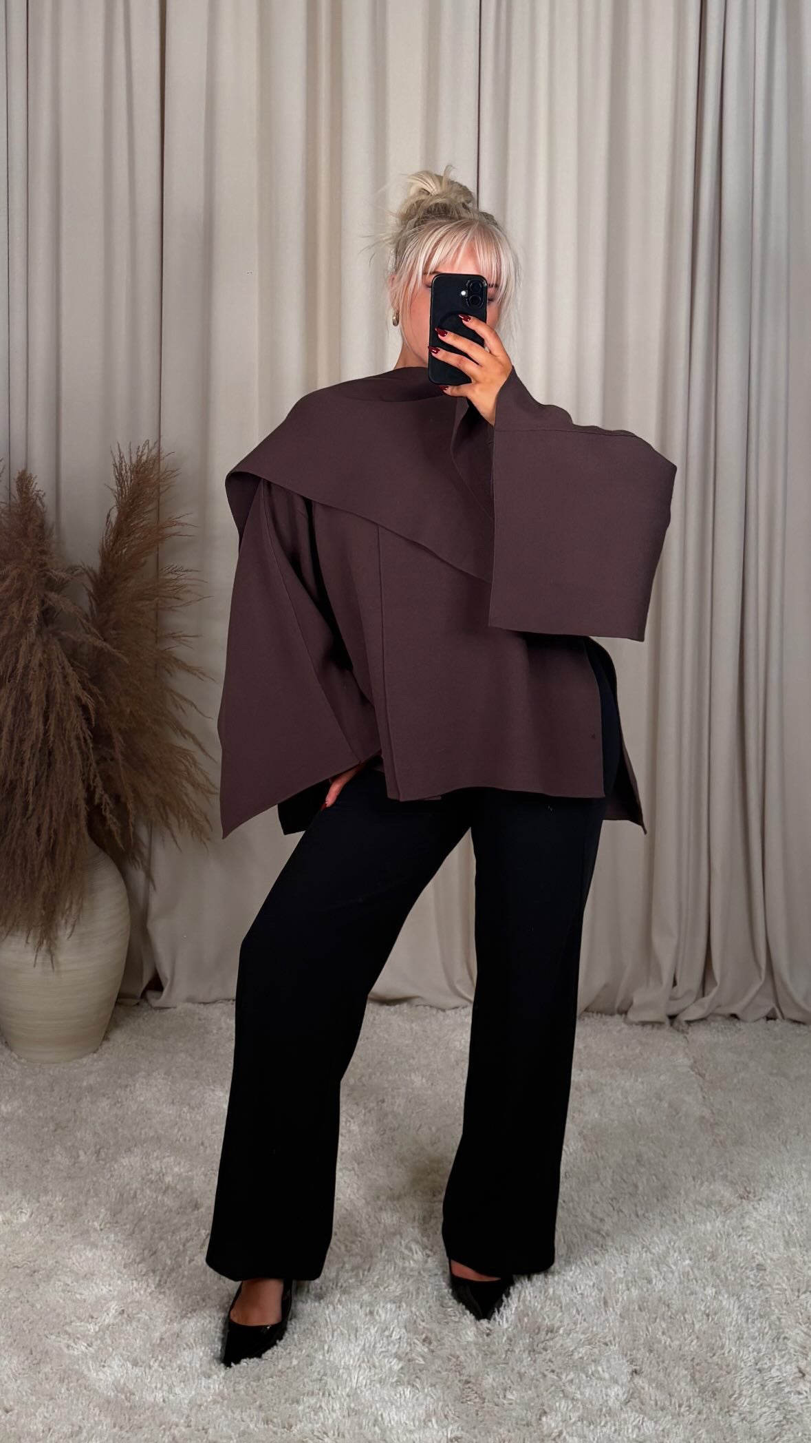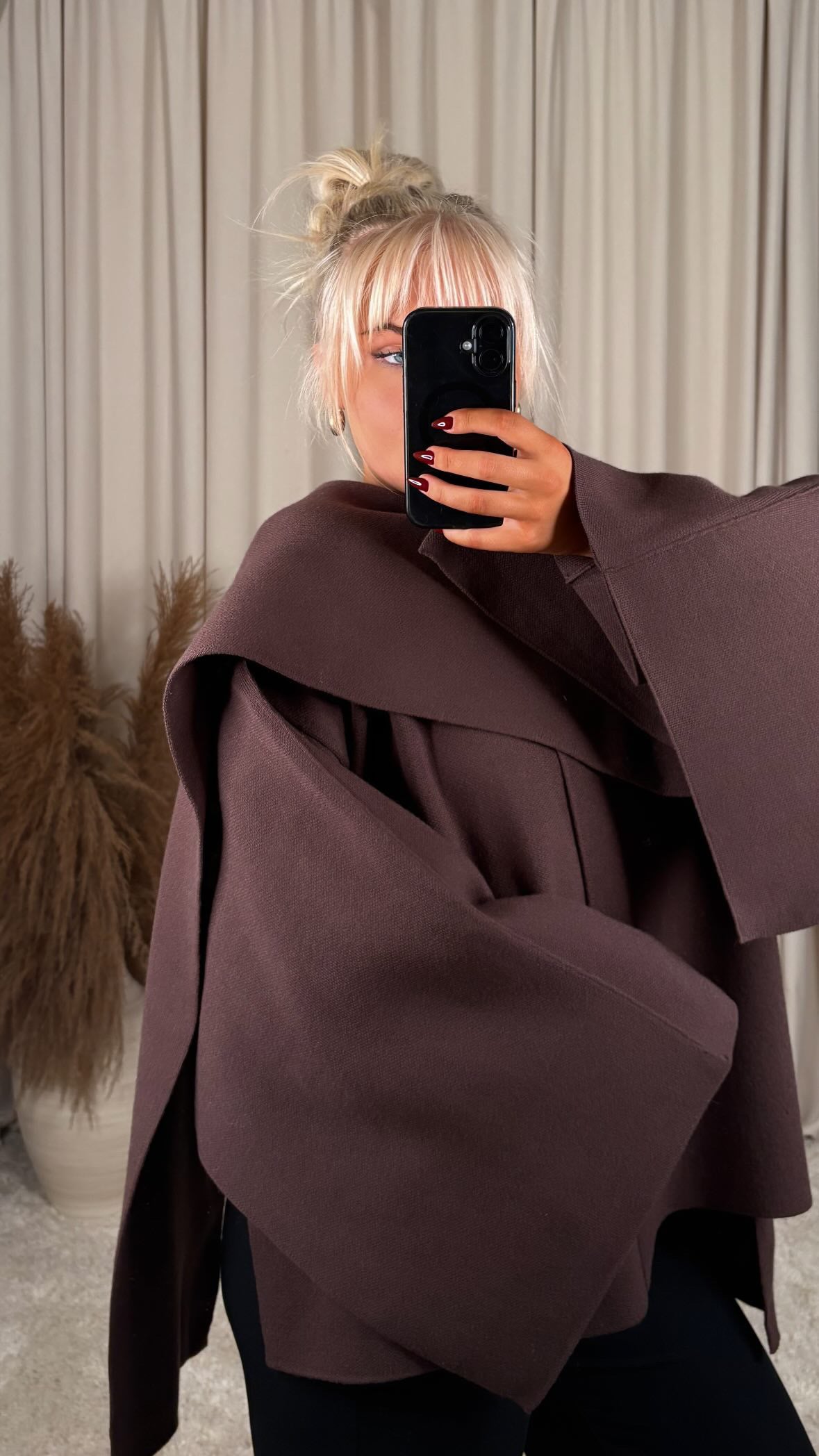 Sjúklega flottur jakki úr mjög þæginlegu efni, þá er góð teygja í efninu og er oversized í sniði jakkinn er one size og passar á S-M-L modelið er 168cm og er í stærð S