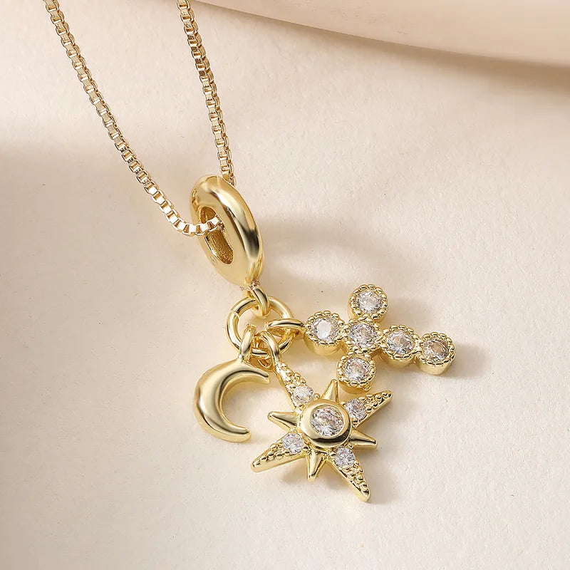 Hálsmen með Set af Kross, Tungli, og Stjörnu,