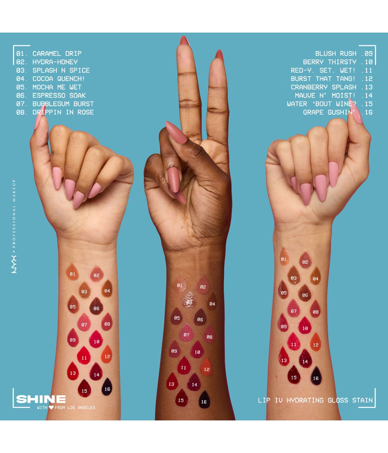 Lip I.V. Hydrating Gloss Stain – veitir samstundis gljáandi, blauta áferð og endingargóðan lit í allt að 12 tíma.